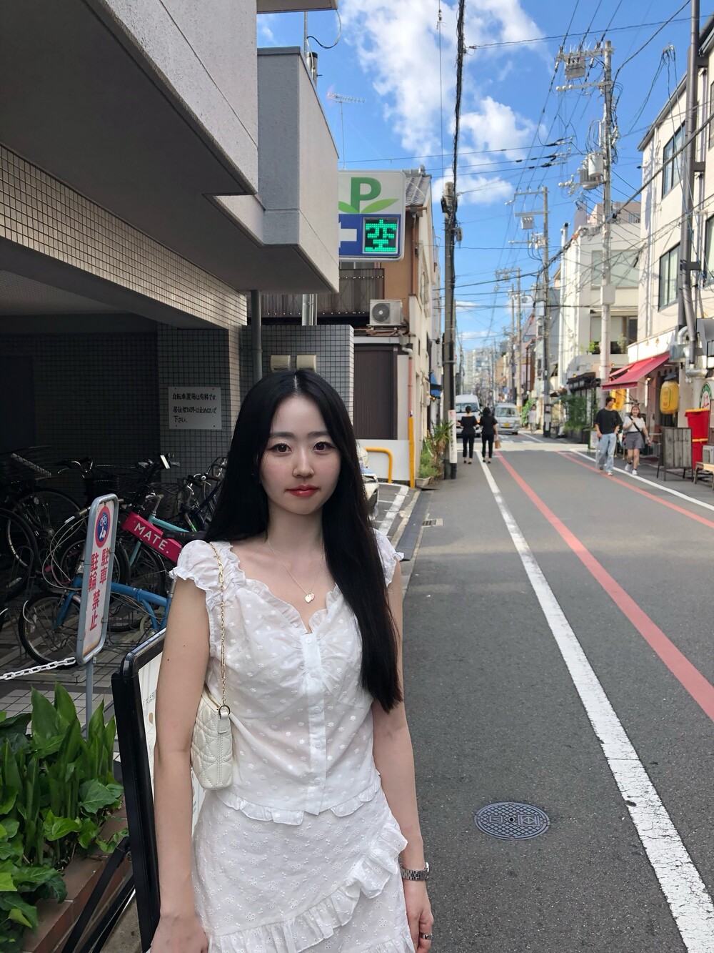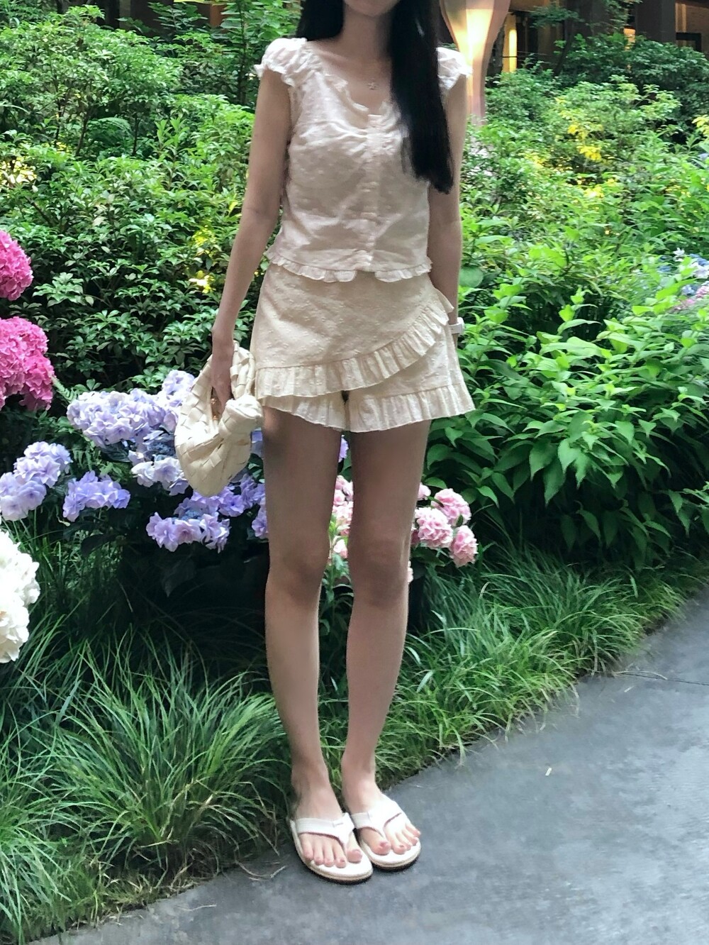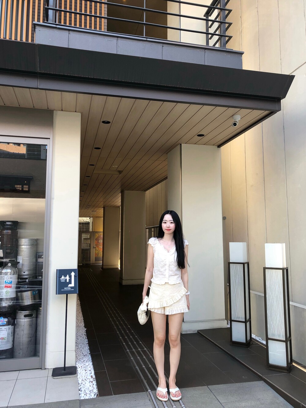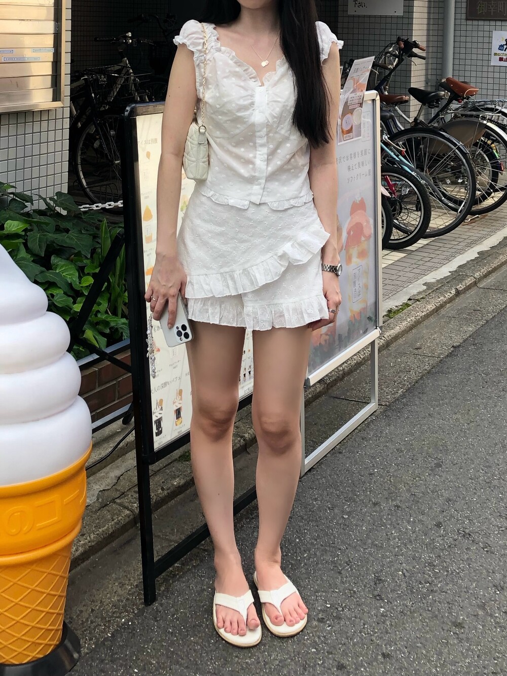 함께 코디한 플라워 블라우스와 셋업 착용을 추천드려요.