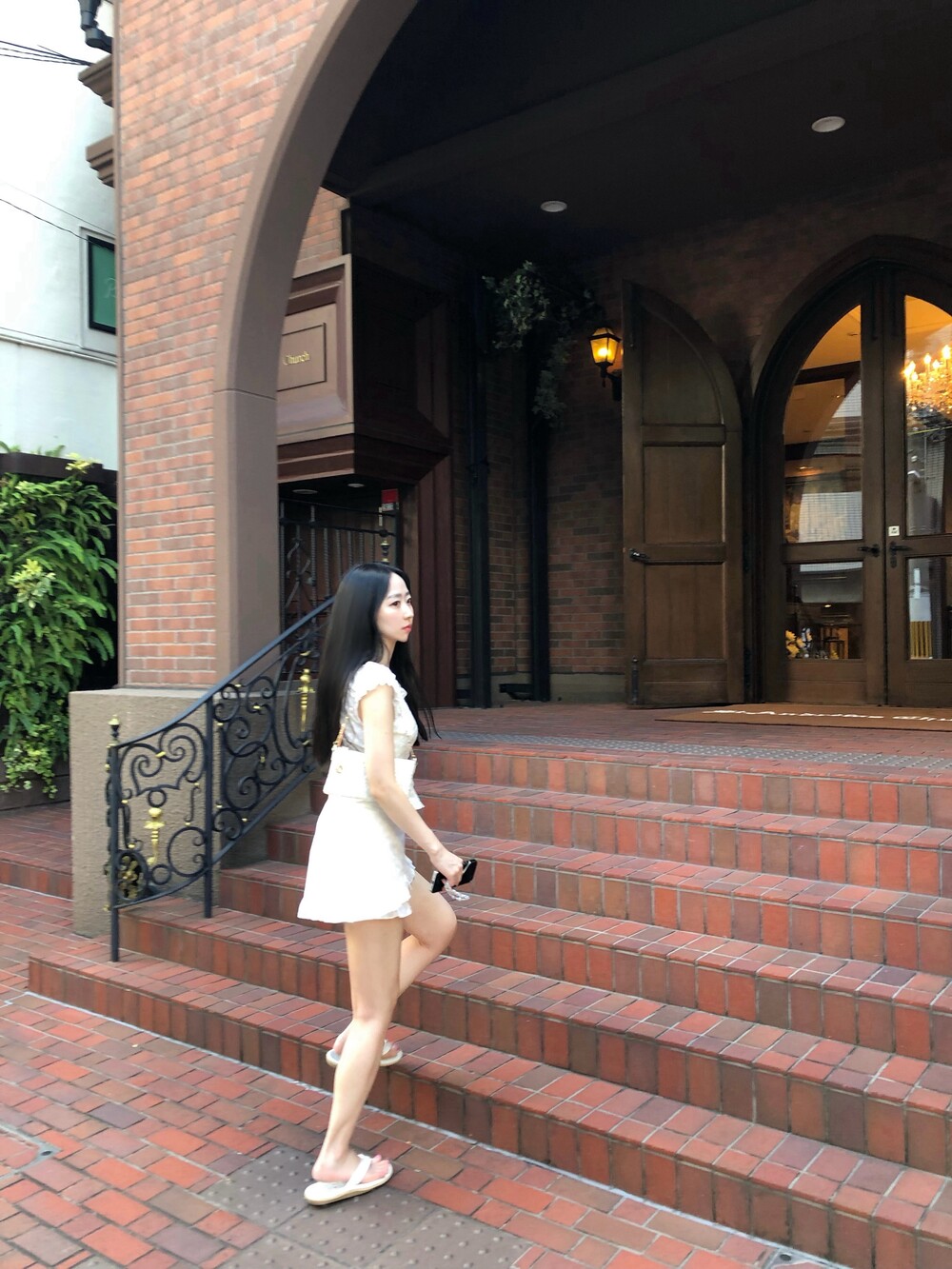 포인트로 퓨어한 무드의 플라워 팬츠랍니다.