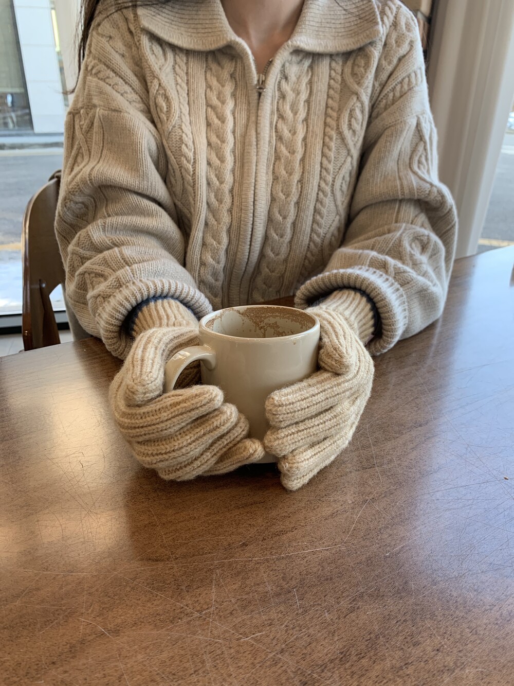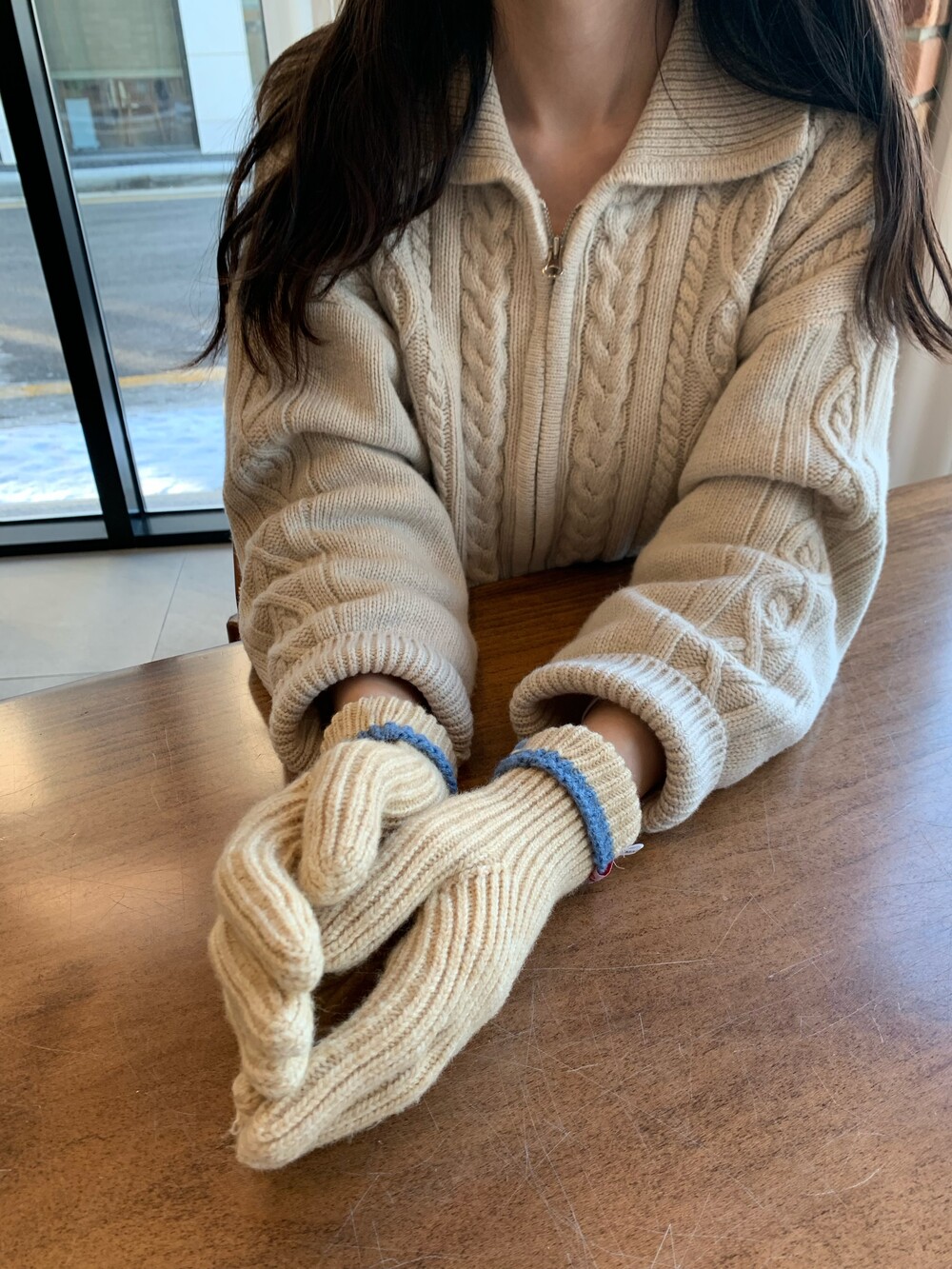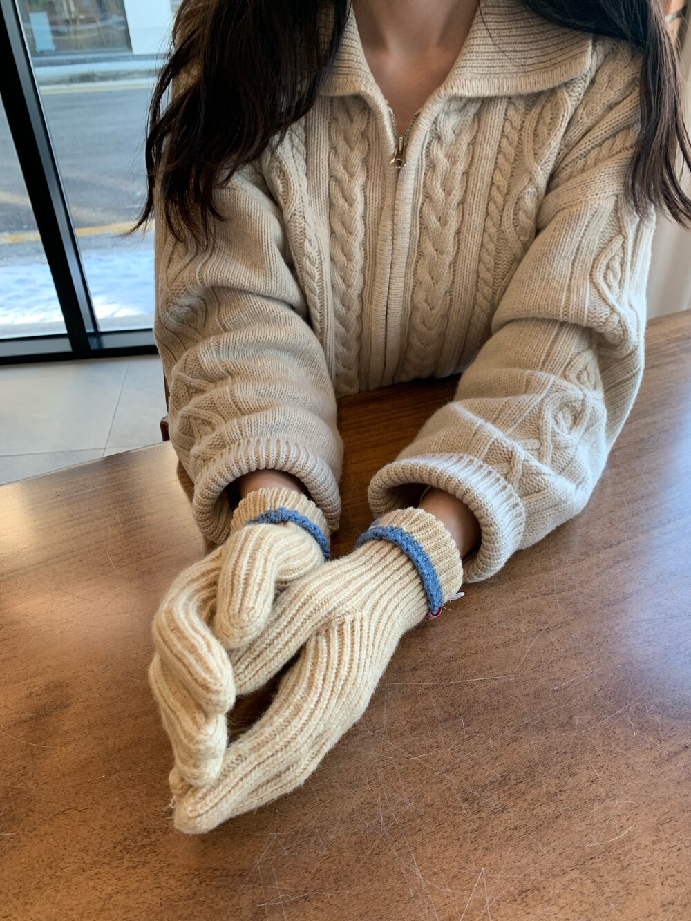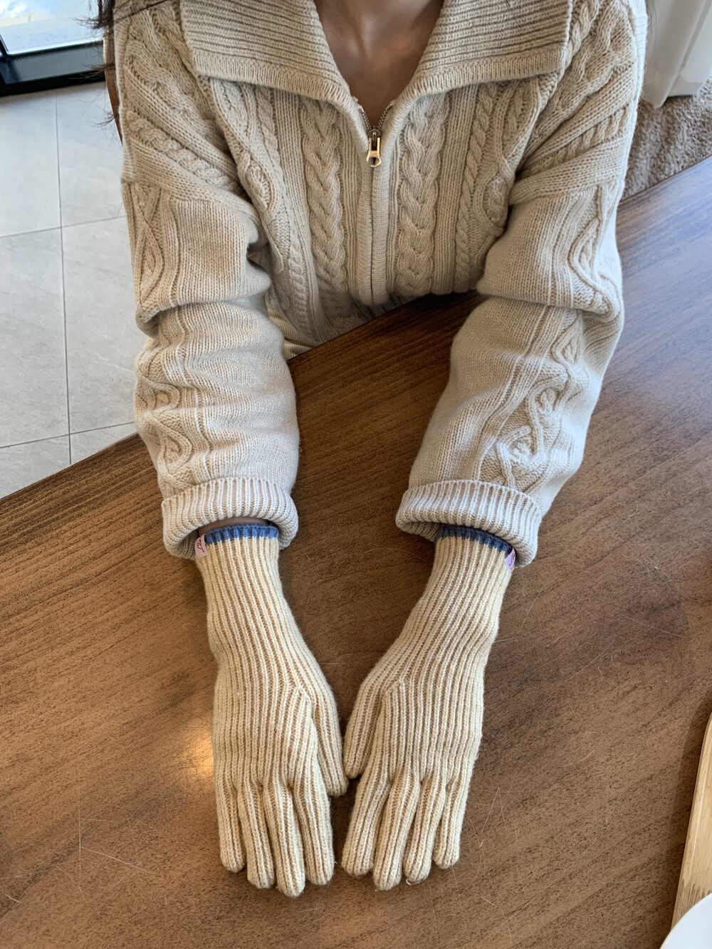 손목 부분을 접거나 펴서 더 따뜻하게 착용 가능하며,