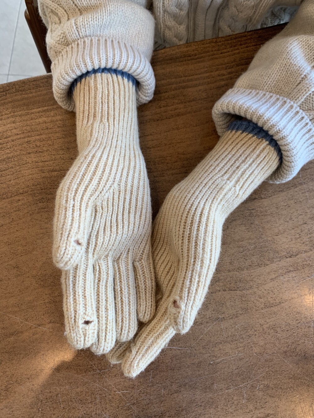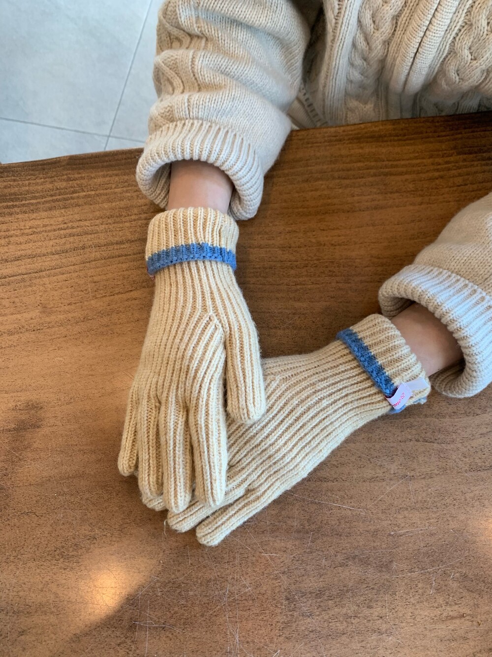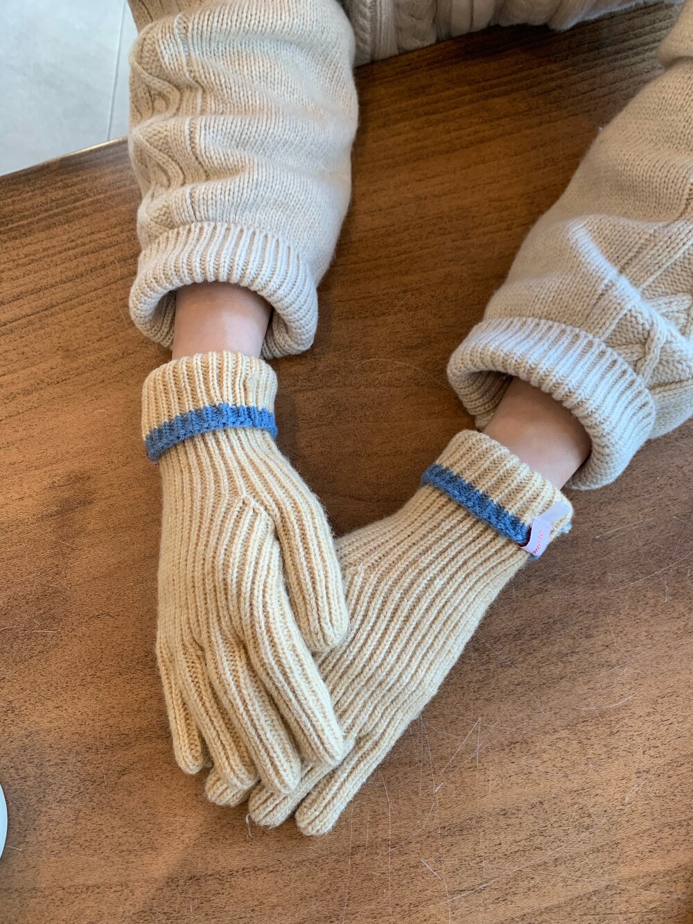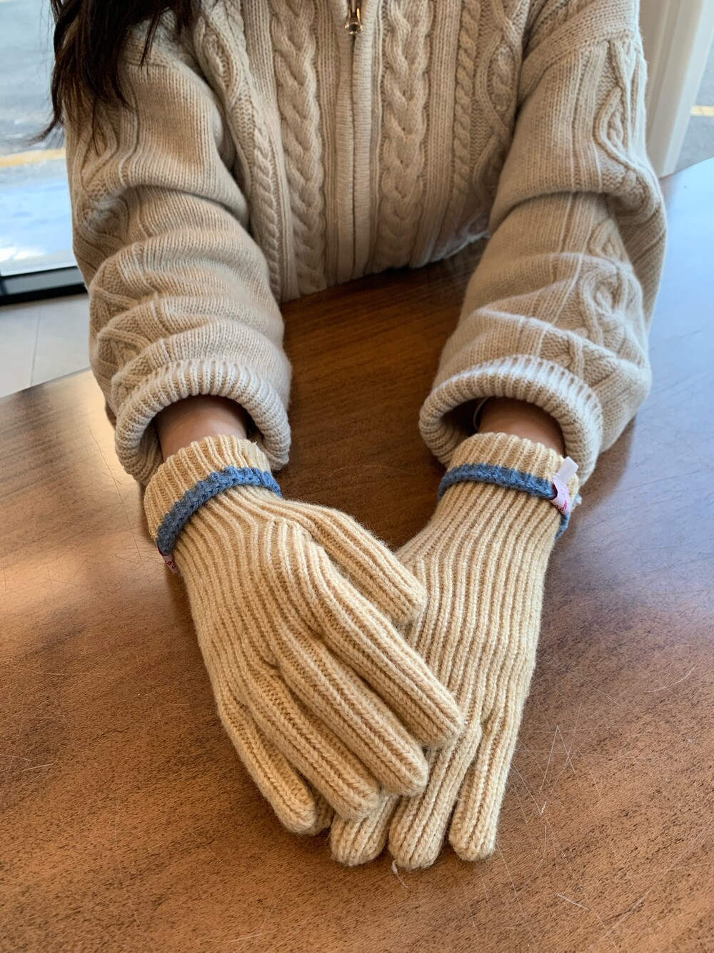 트렌디하면서도 따뜻한 겨울시즌 배색 니트 장갑입니다.
