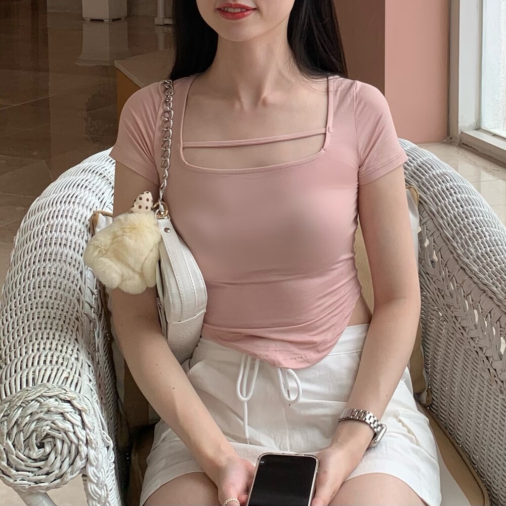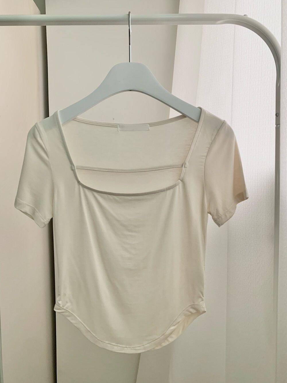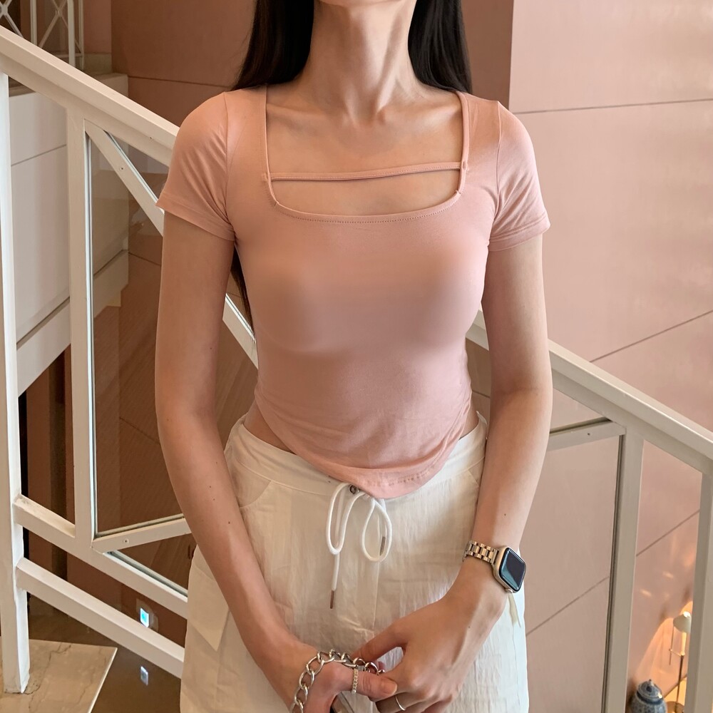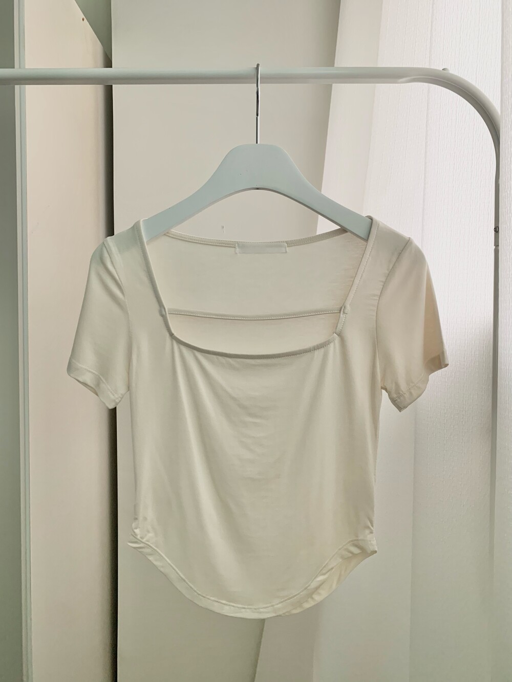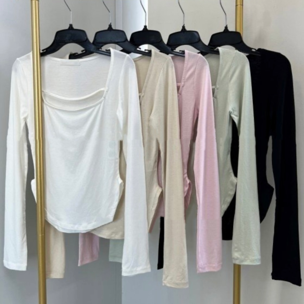 페미닌한 무드의 신상 스퀘어넥 굴림티입니다.