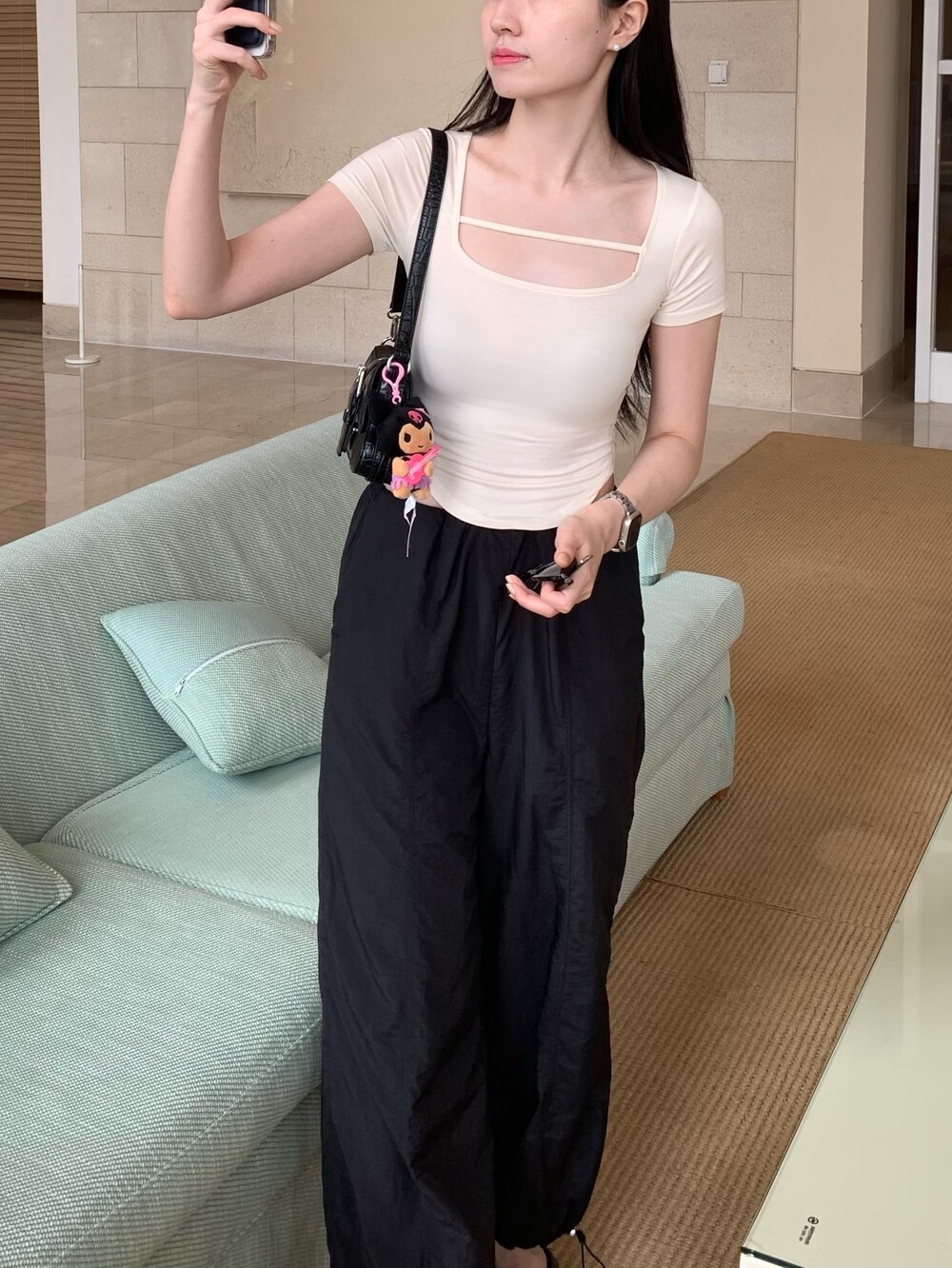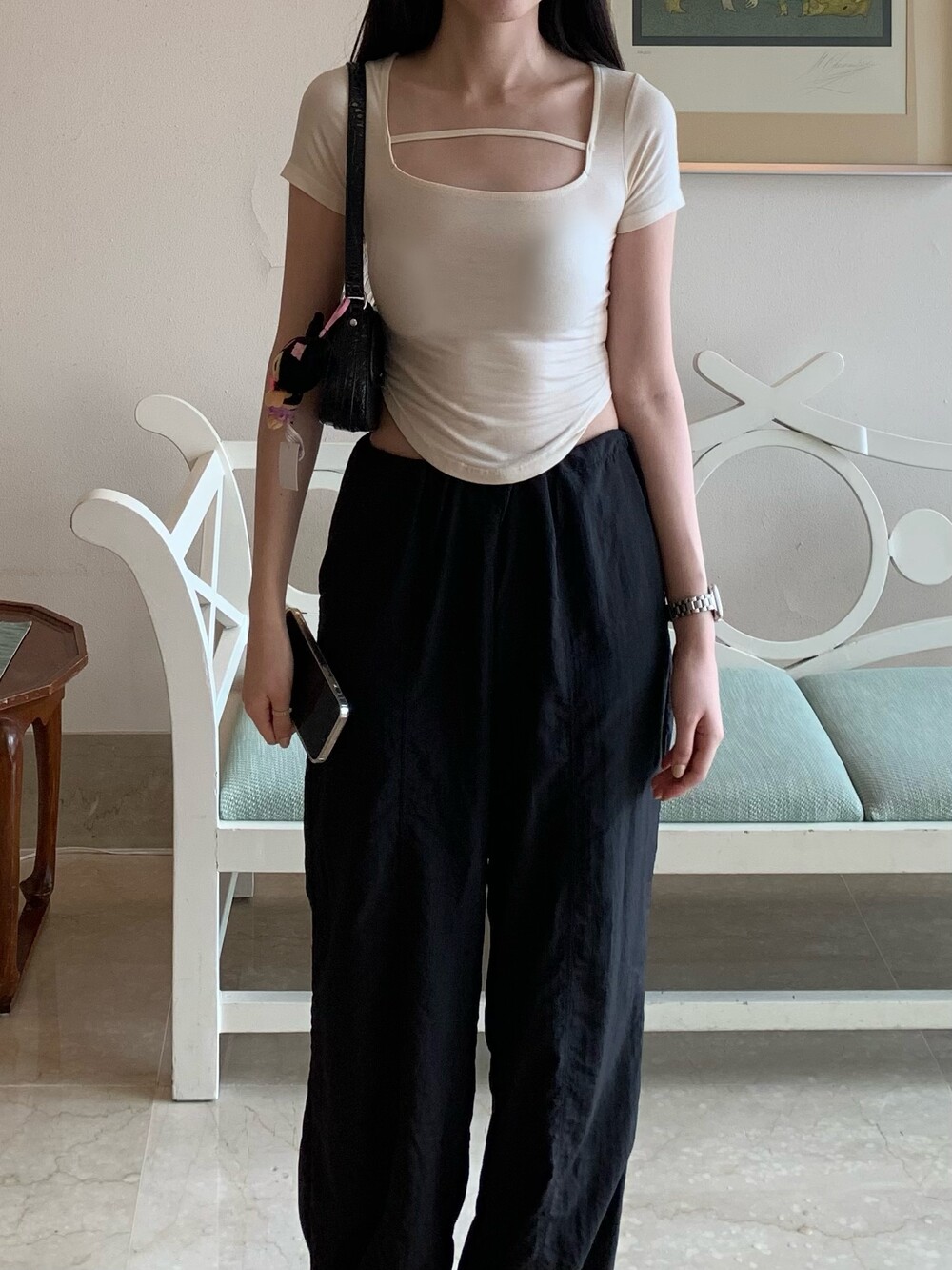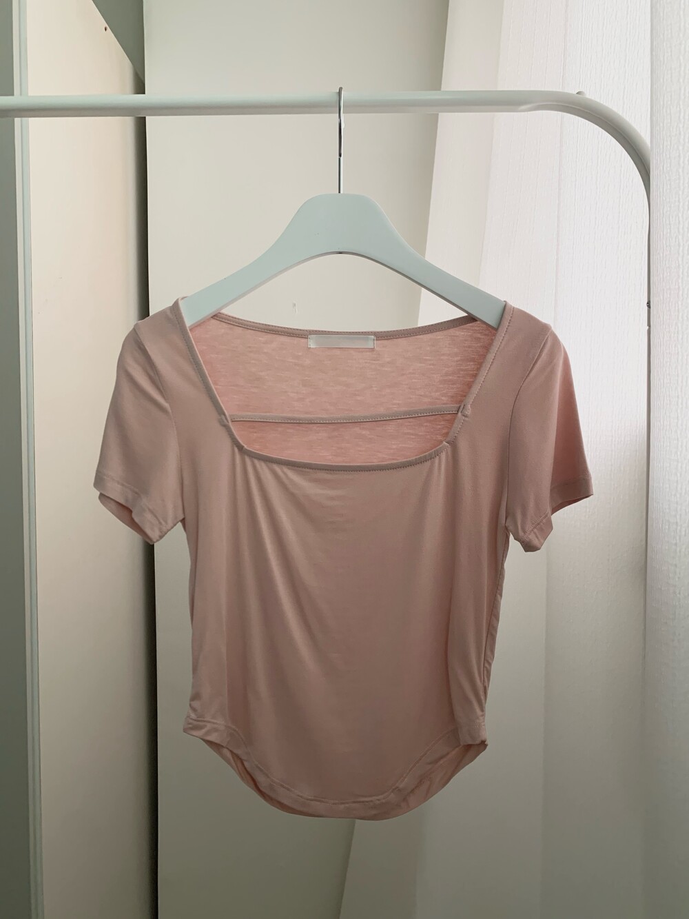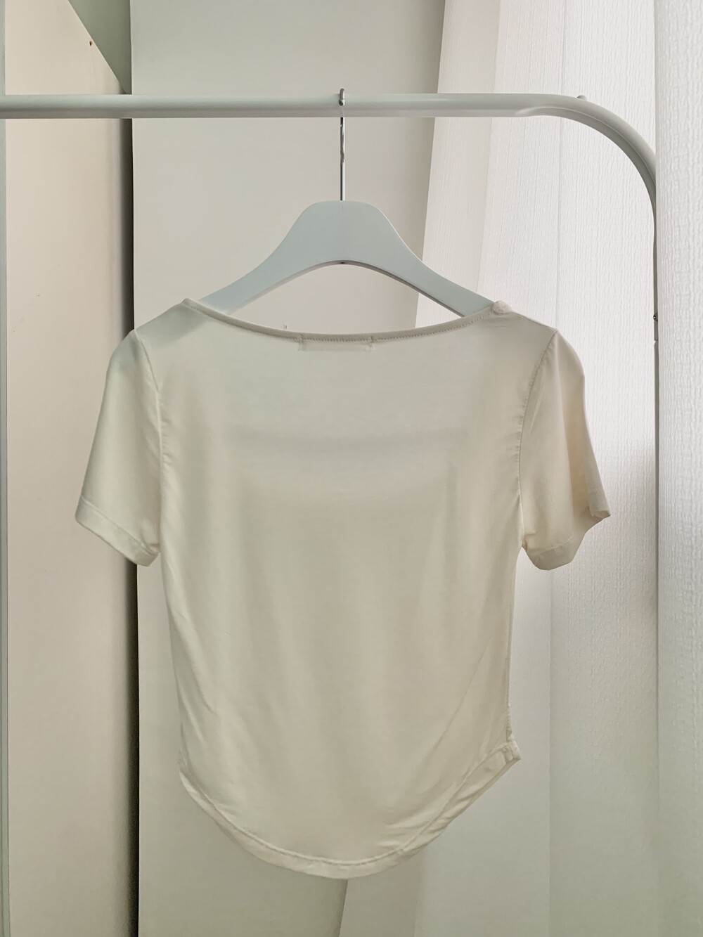 페미닌한 무드의 신상 스퀘어넥 굴림티입니다.