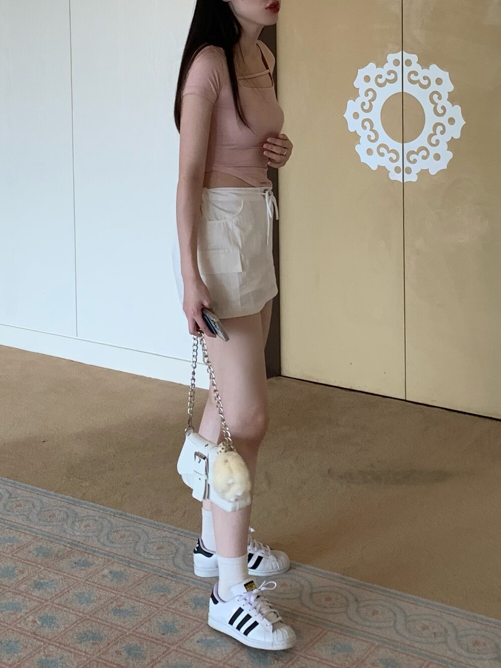 pink / beige / white / black