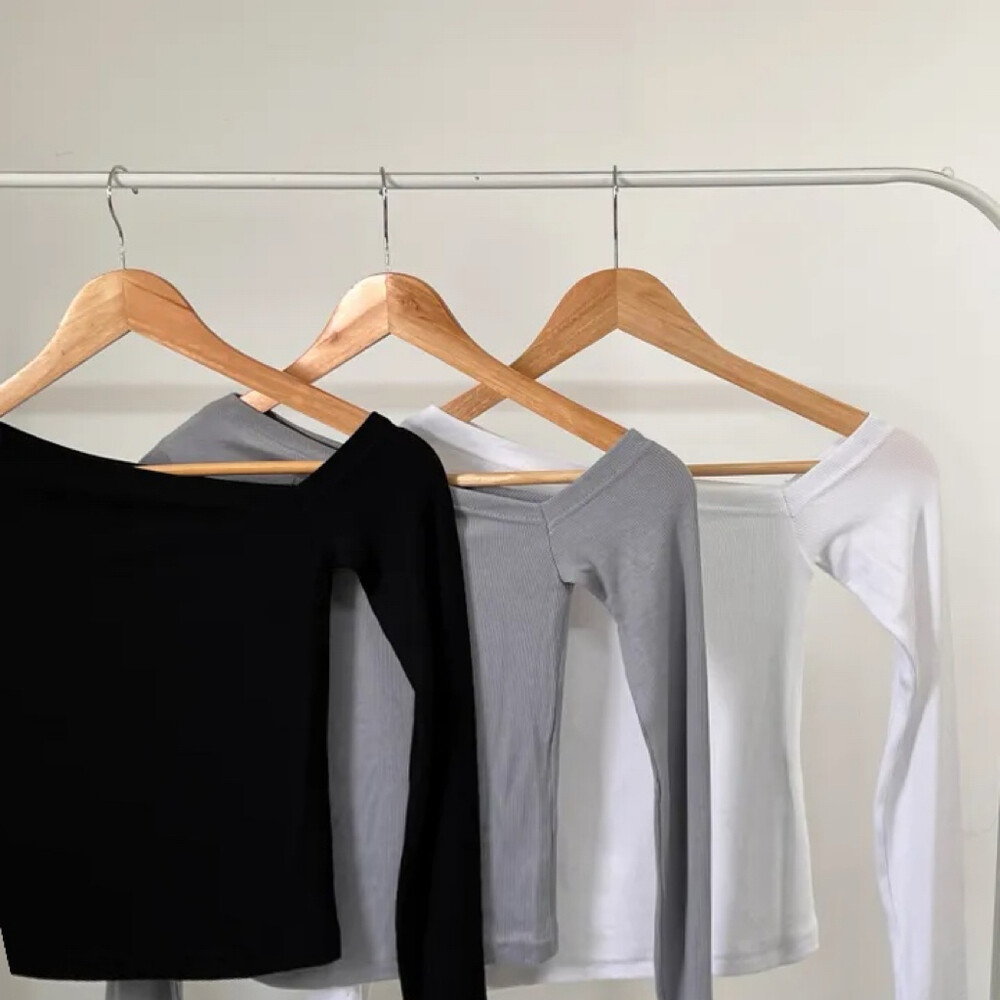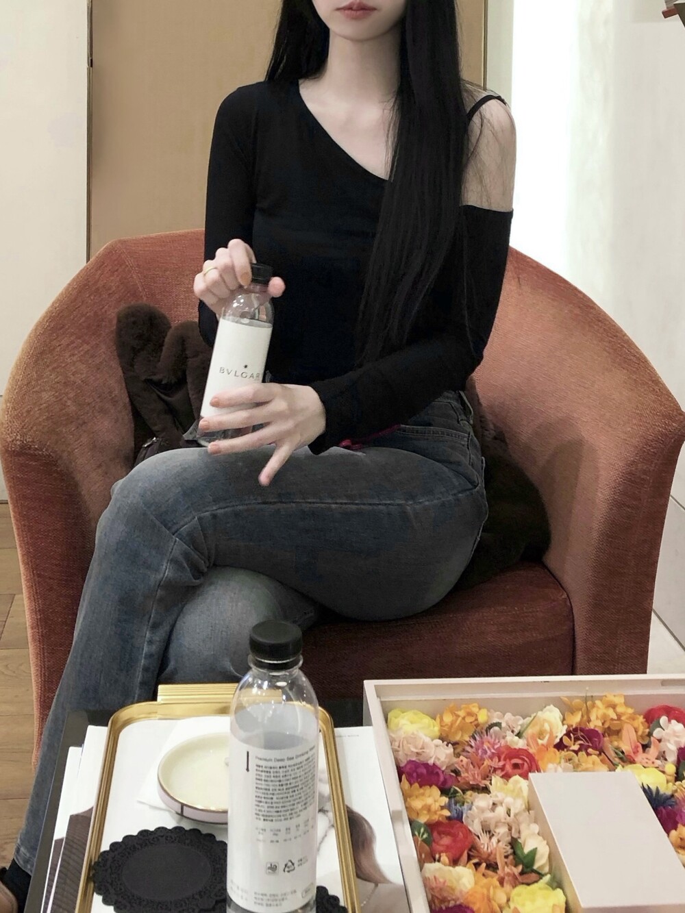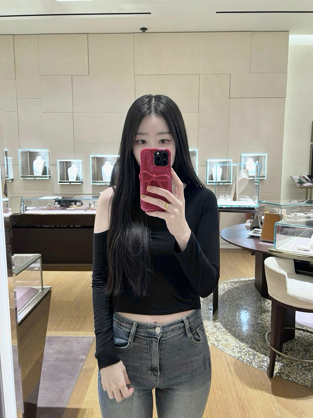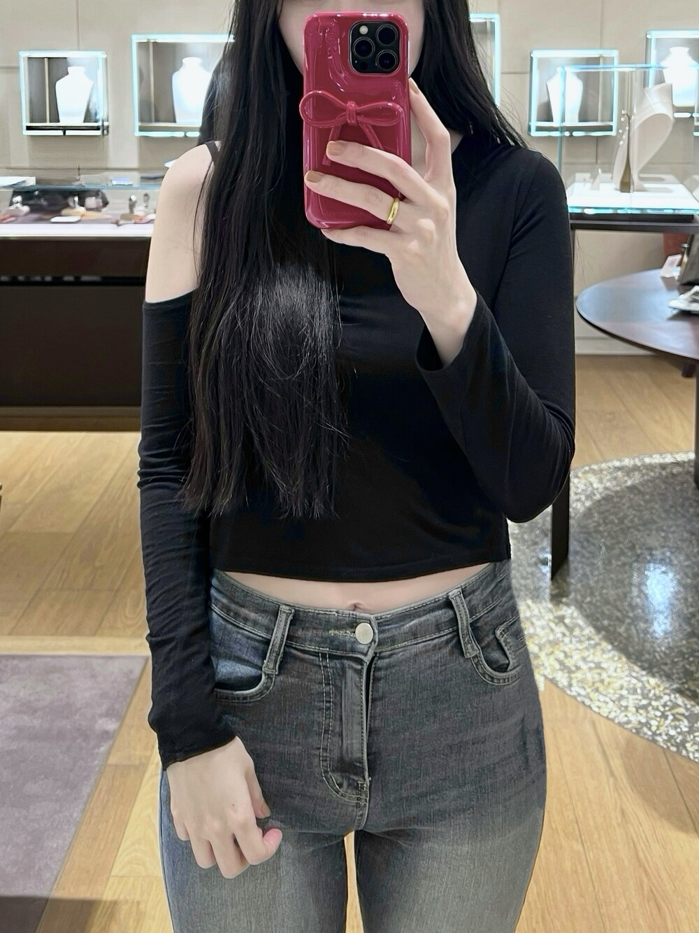 페미닌한 무드의 신상 언발 원오프 티셔츠입니다.