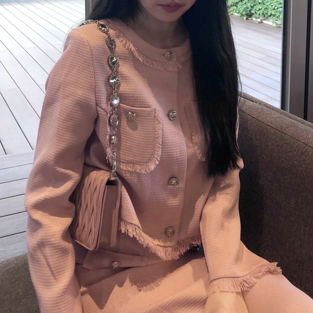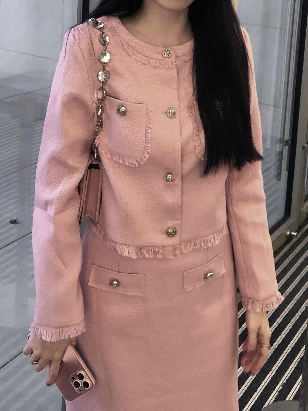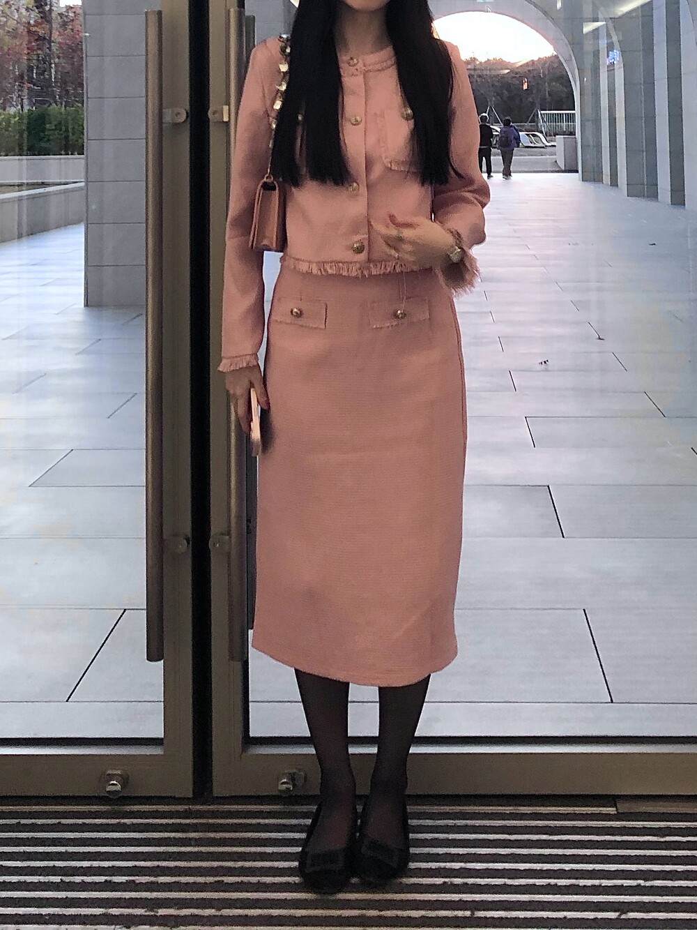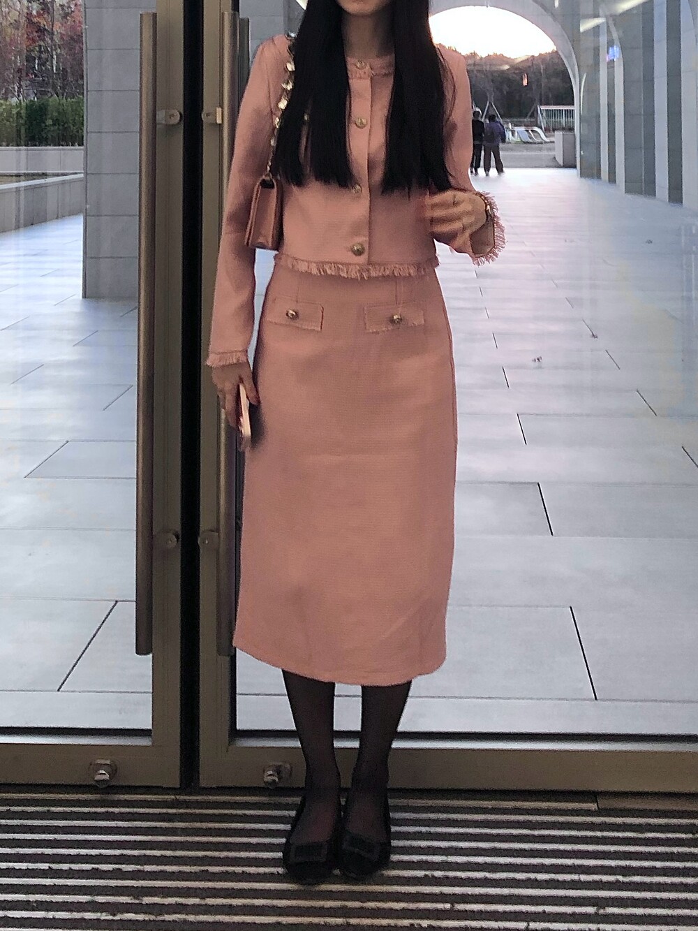 페미닌한 무드의 신상 핑크 트위드 투피스 소개해드려요.