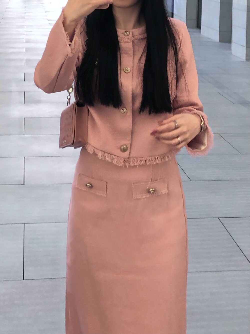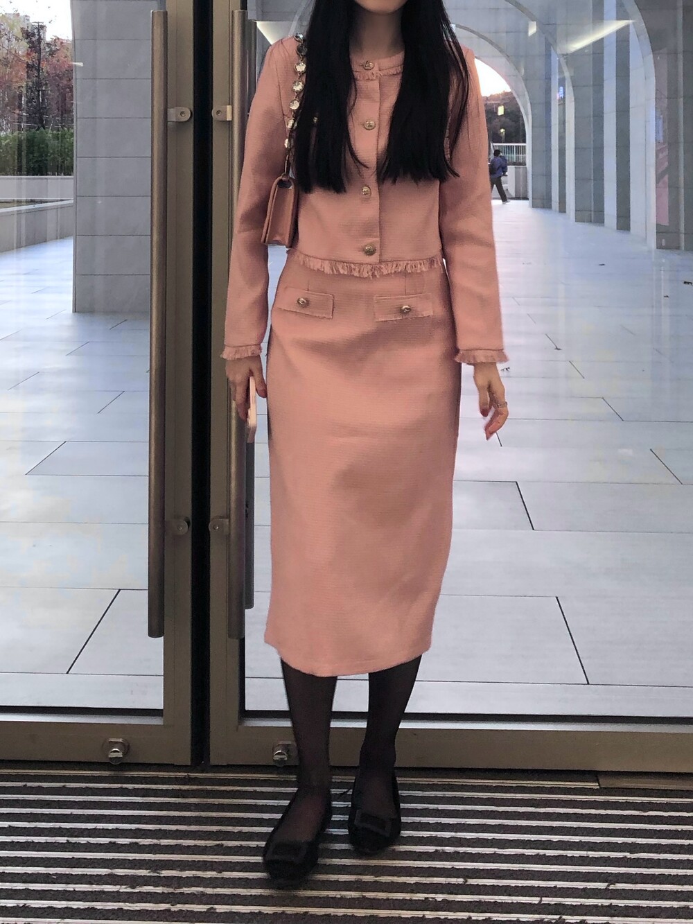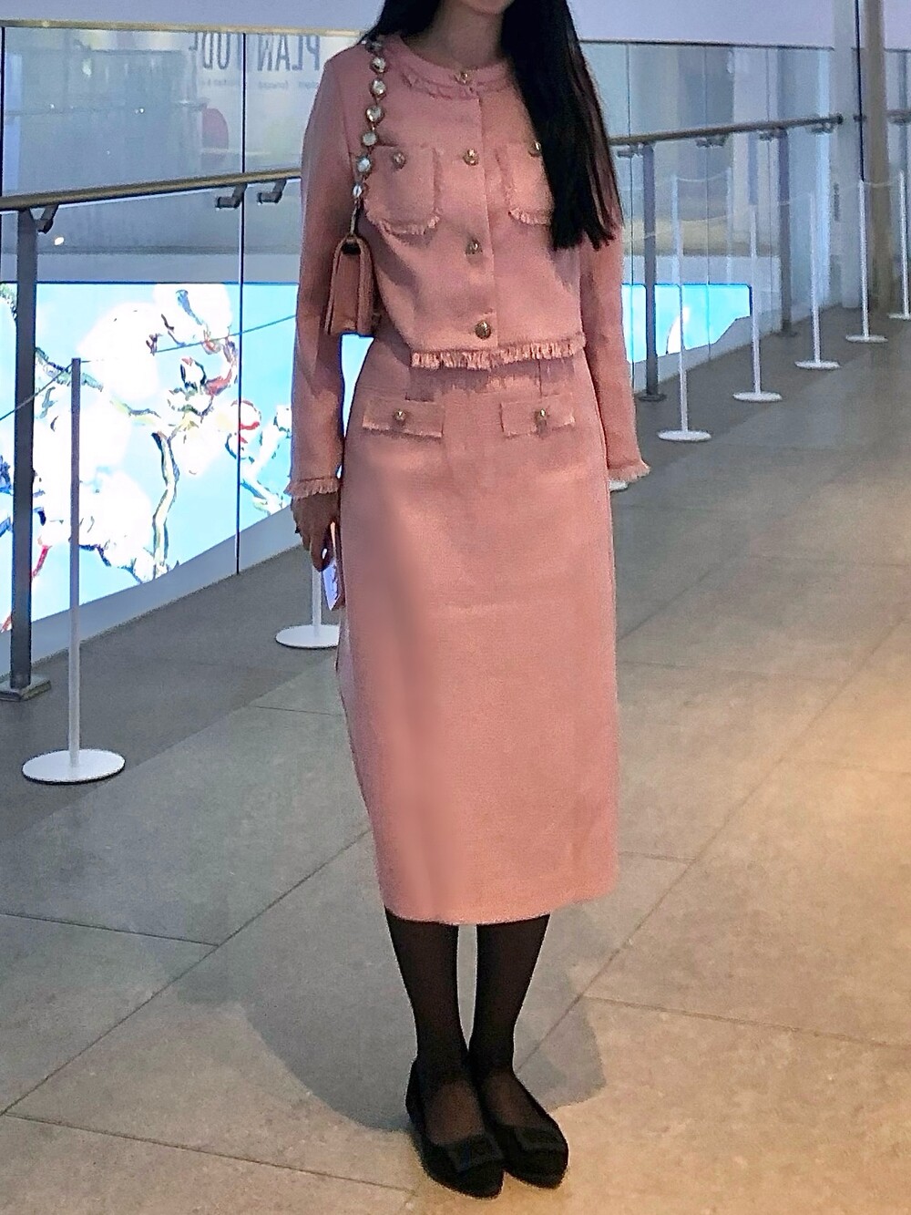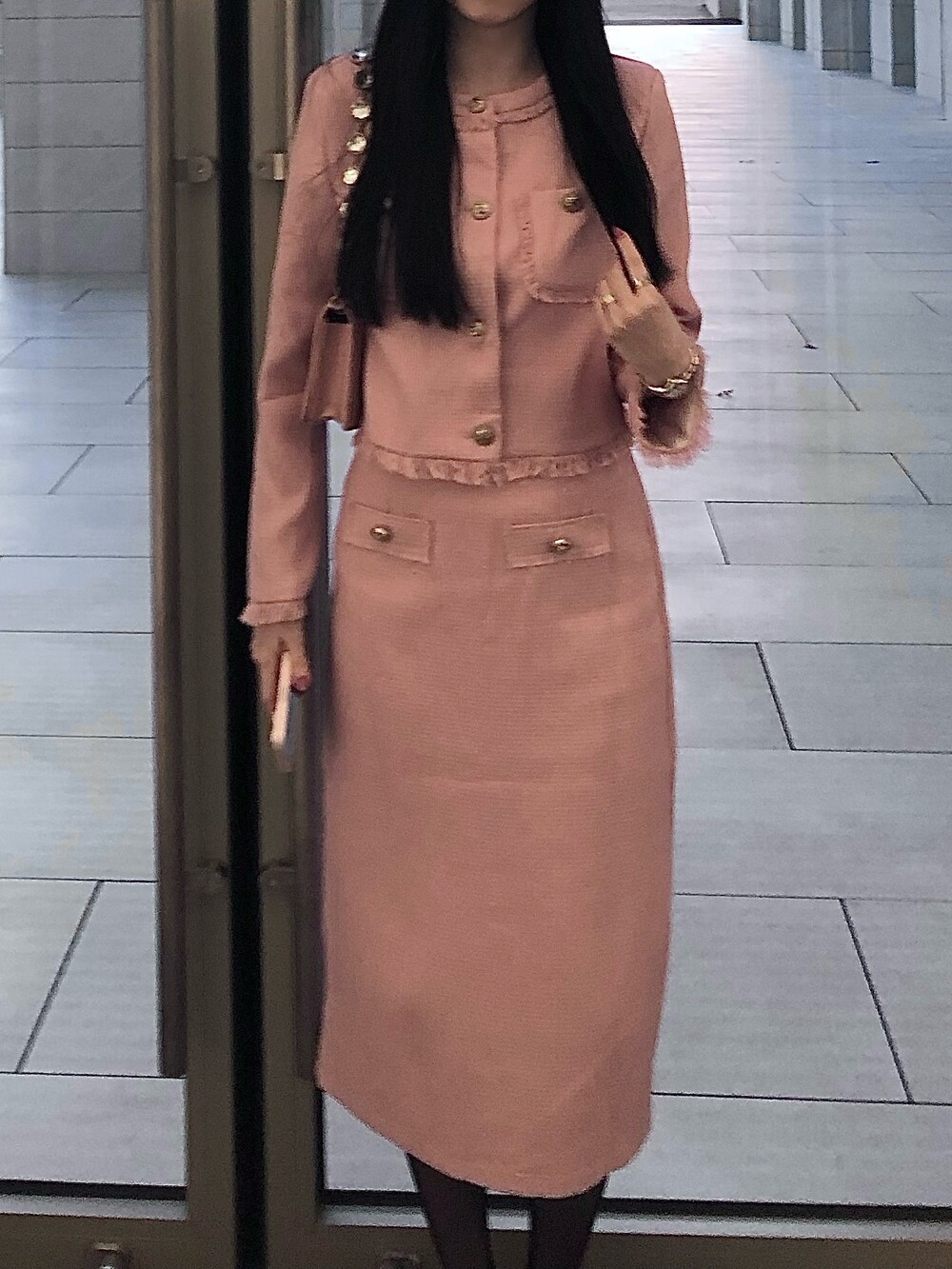 페미닌한 무드의 신상 핑크 트위드 투피스 소개해드려요.