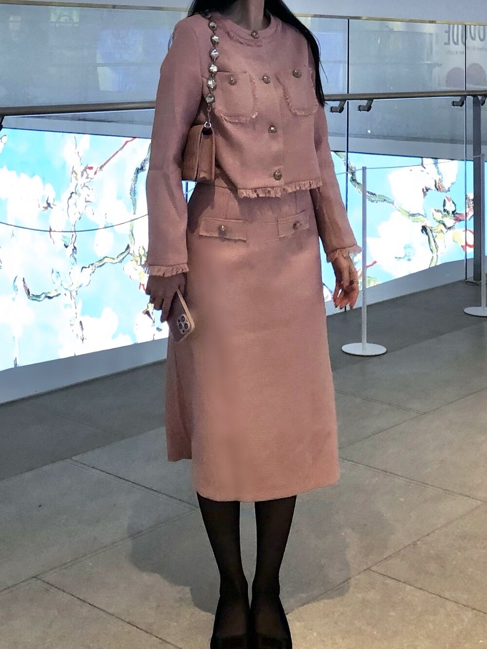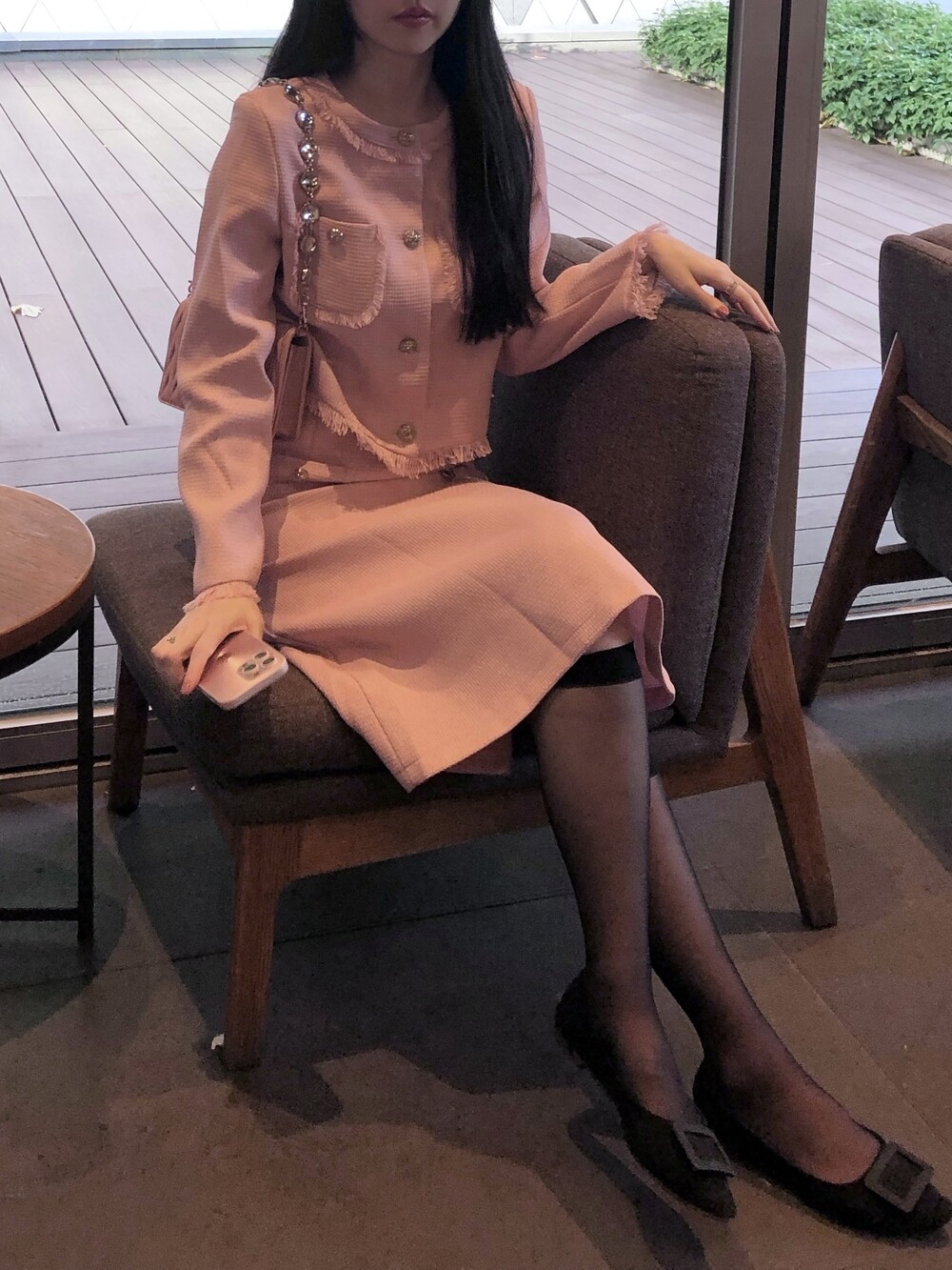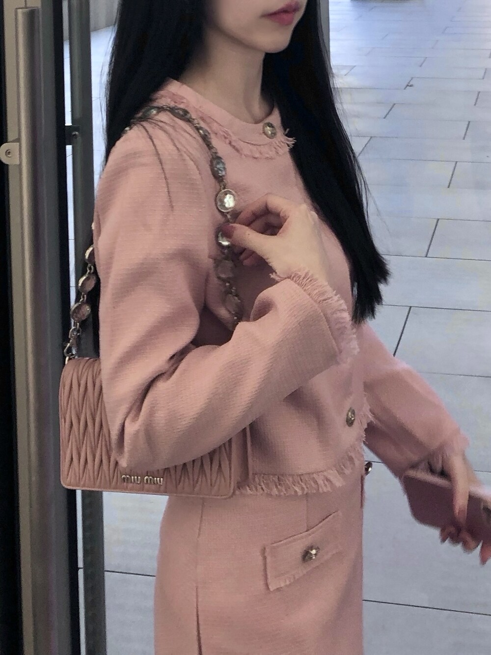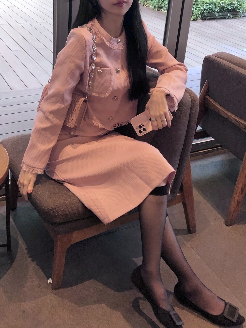 페미닌한 무드의 신상 핑크 트위드 투피스 소개해드려요.