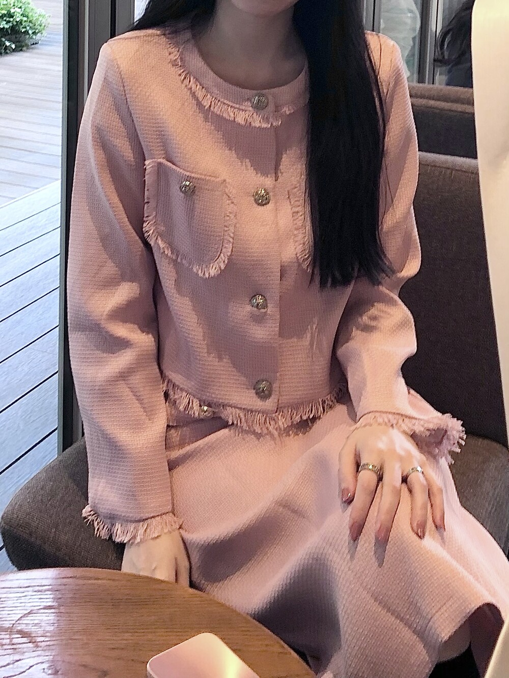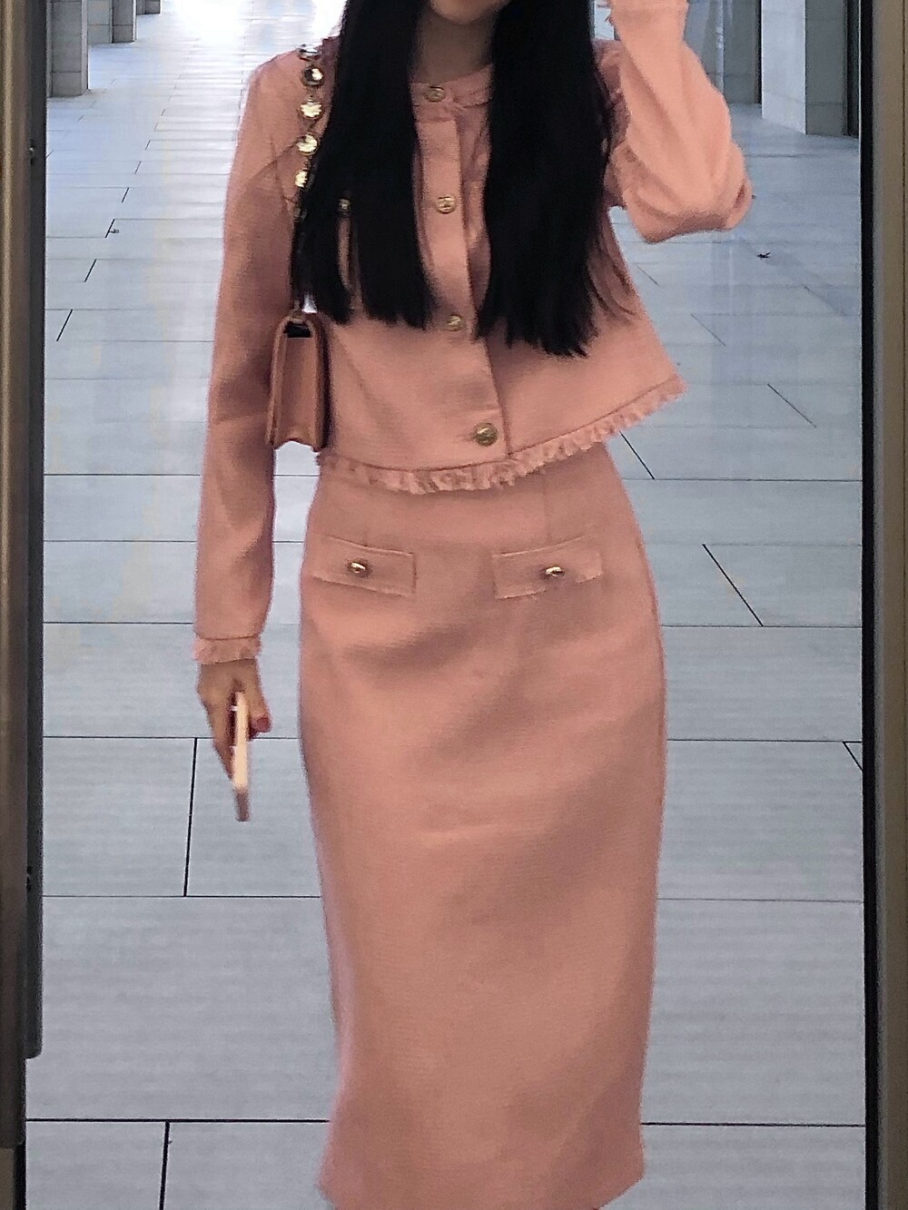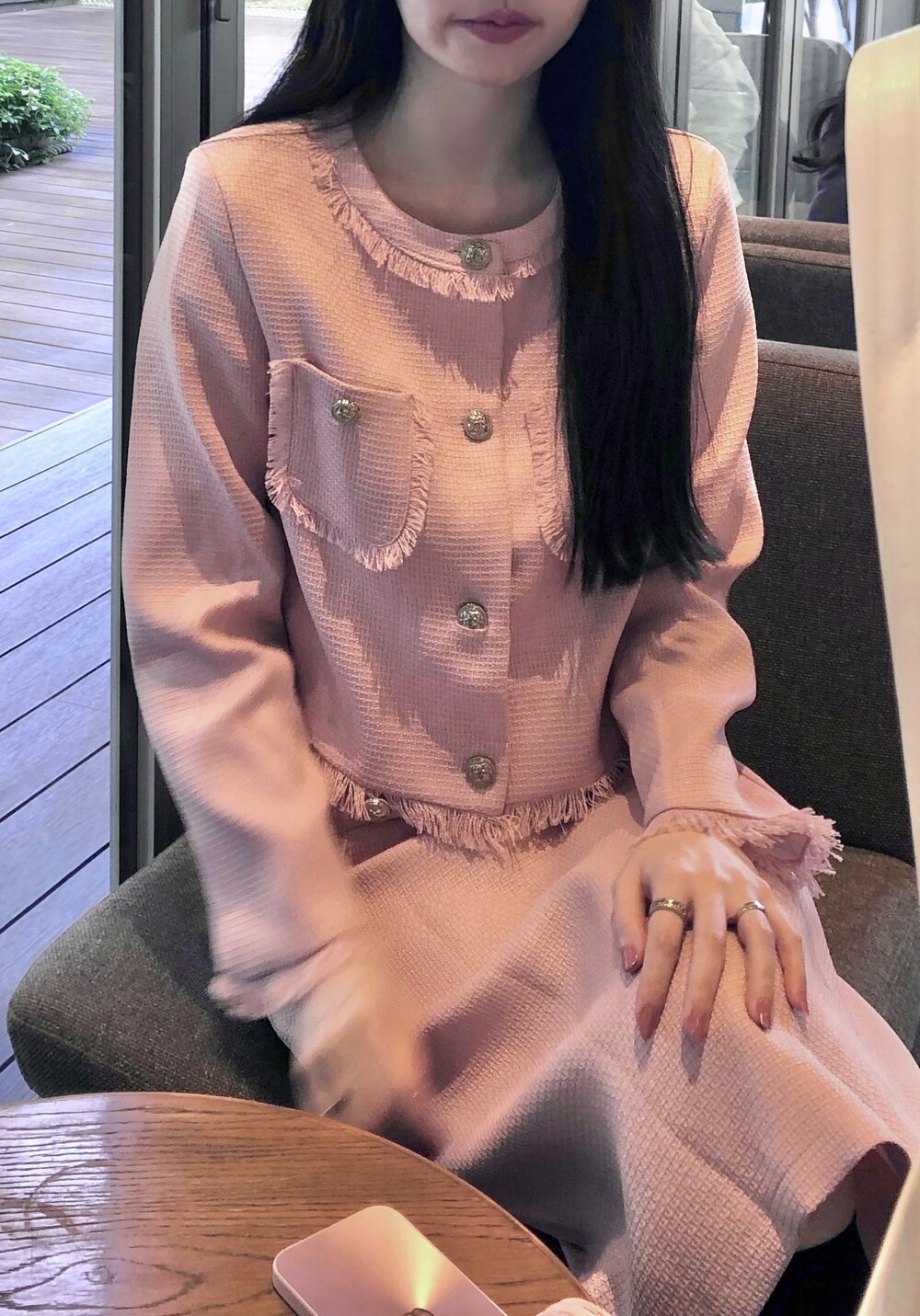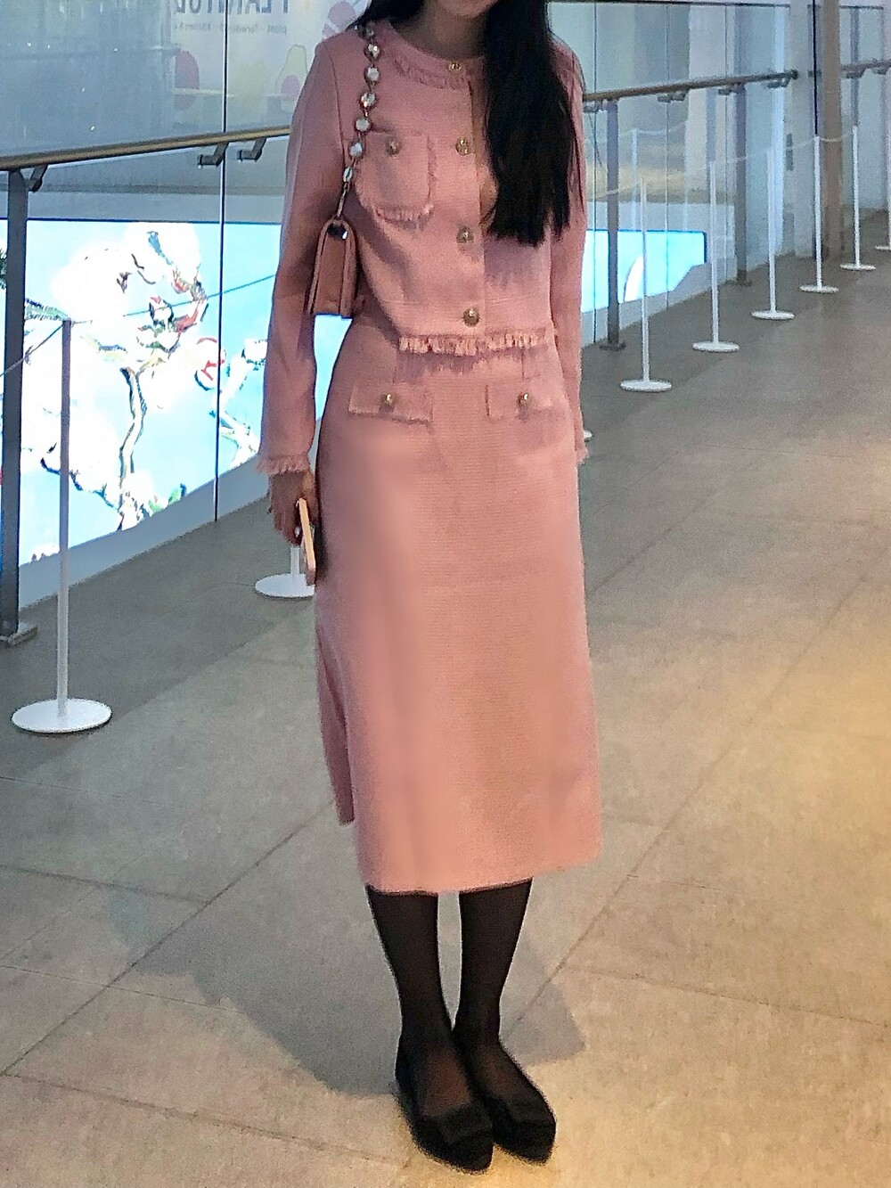 페미닌한 무드의 신상 핑크 트위드 투피스 소개해드려요.