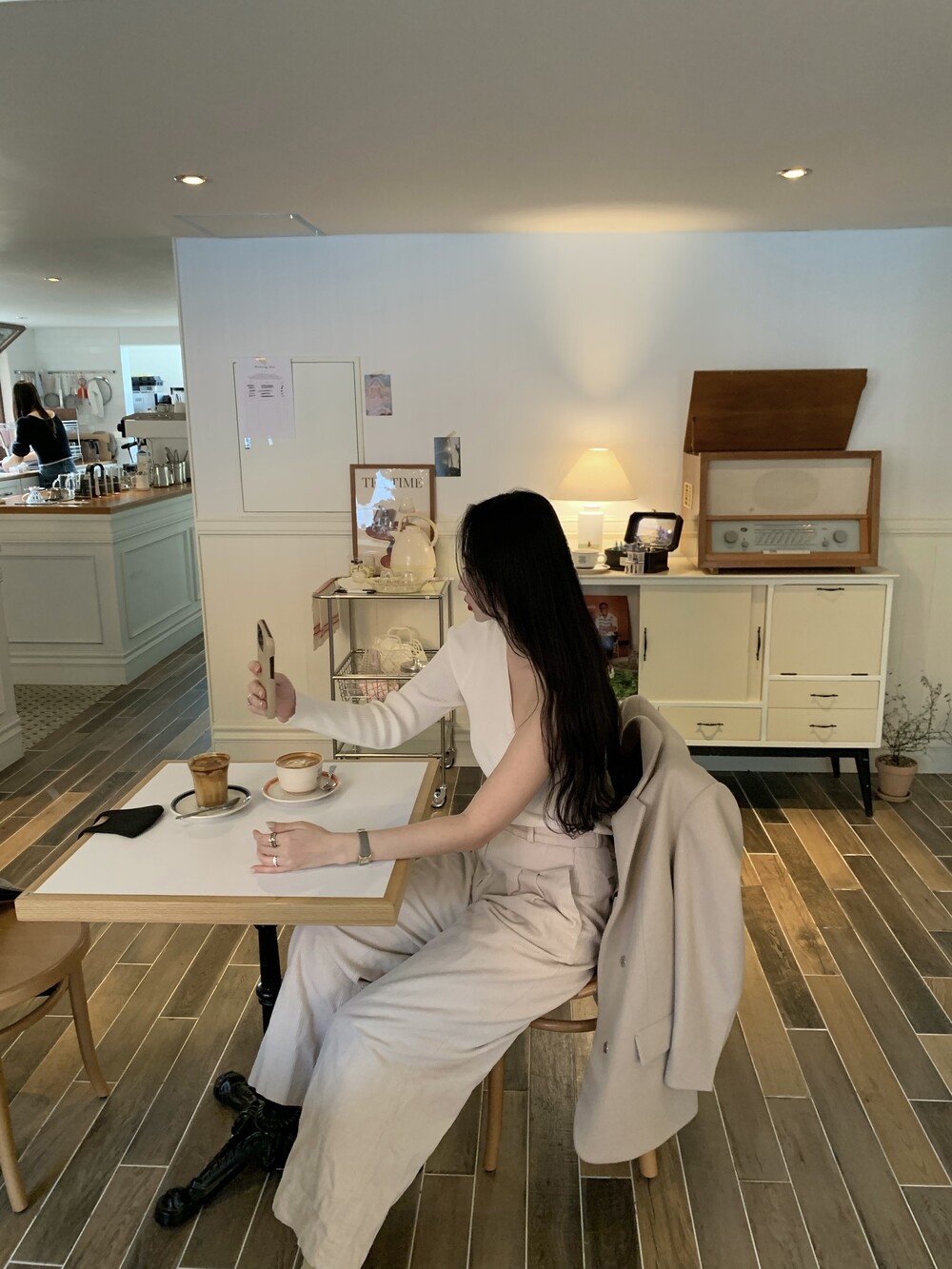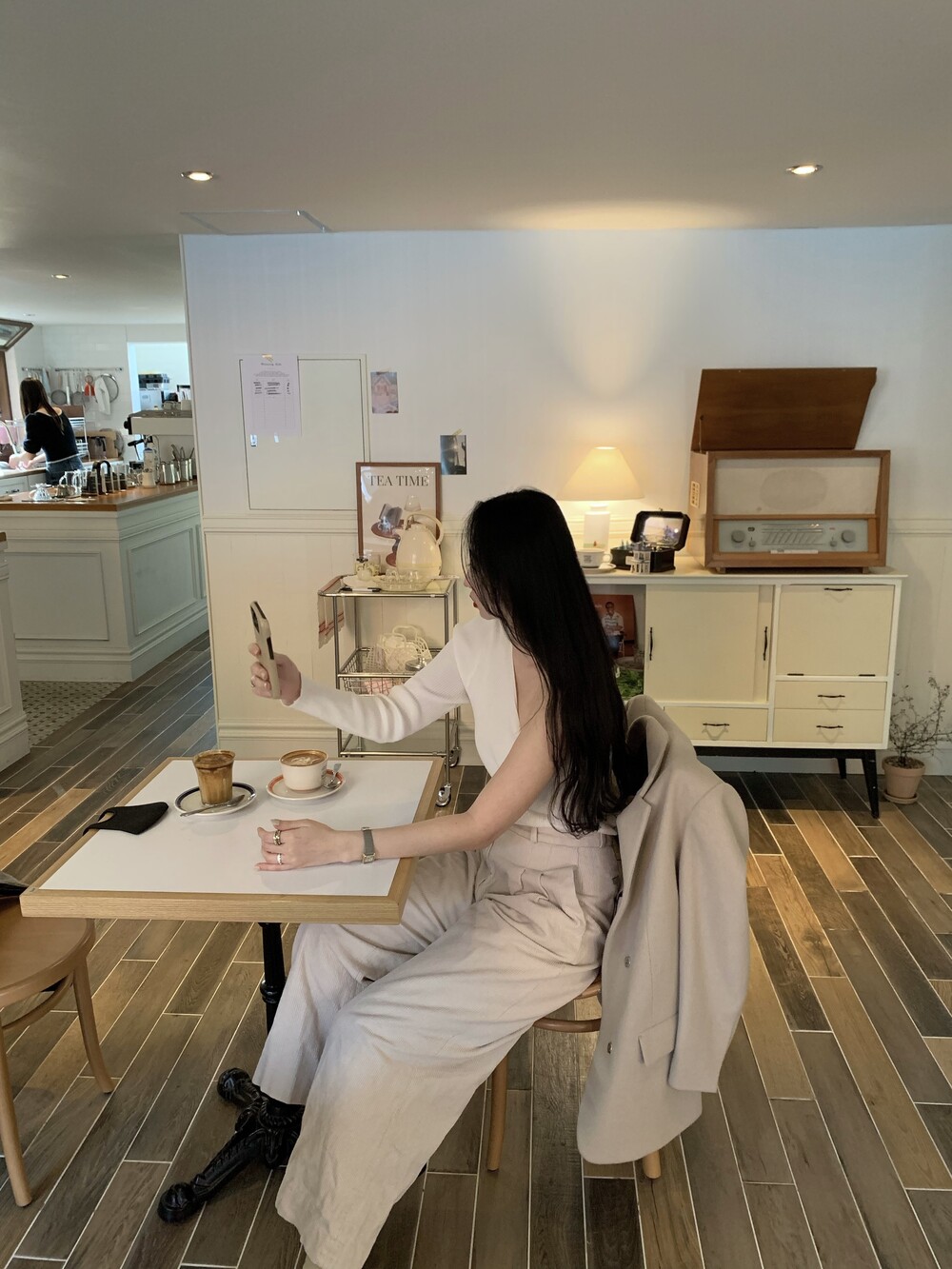 소매 하단의 워머 디테일로 시크하게 착용 가능합니다.