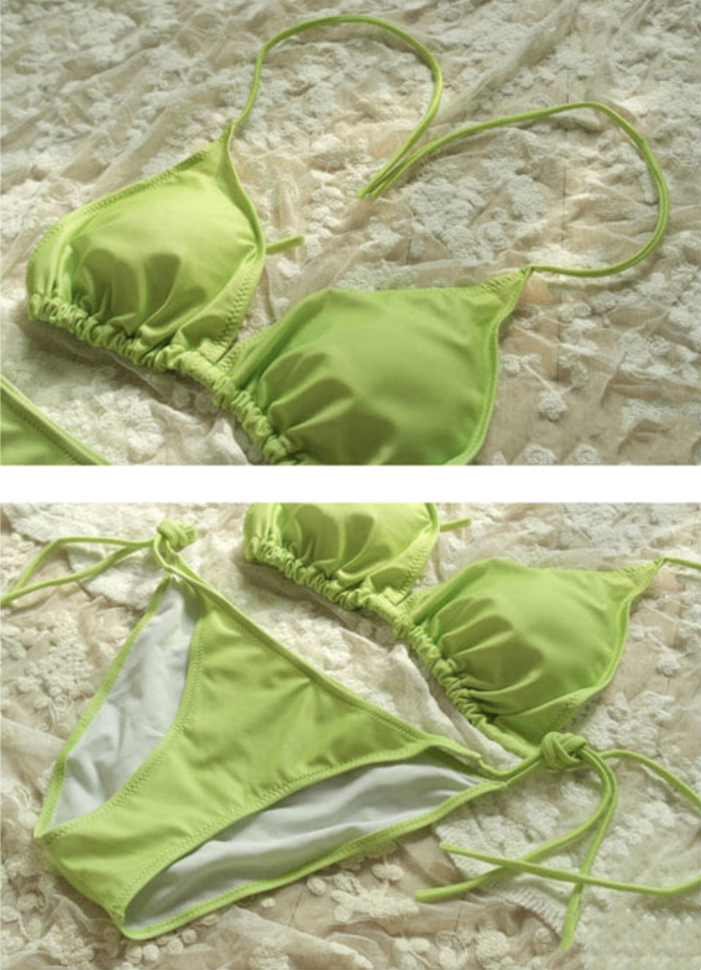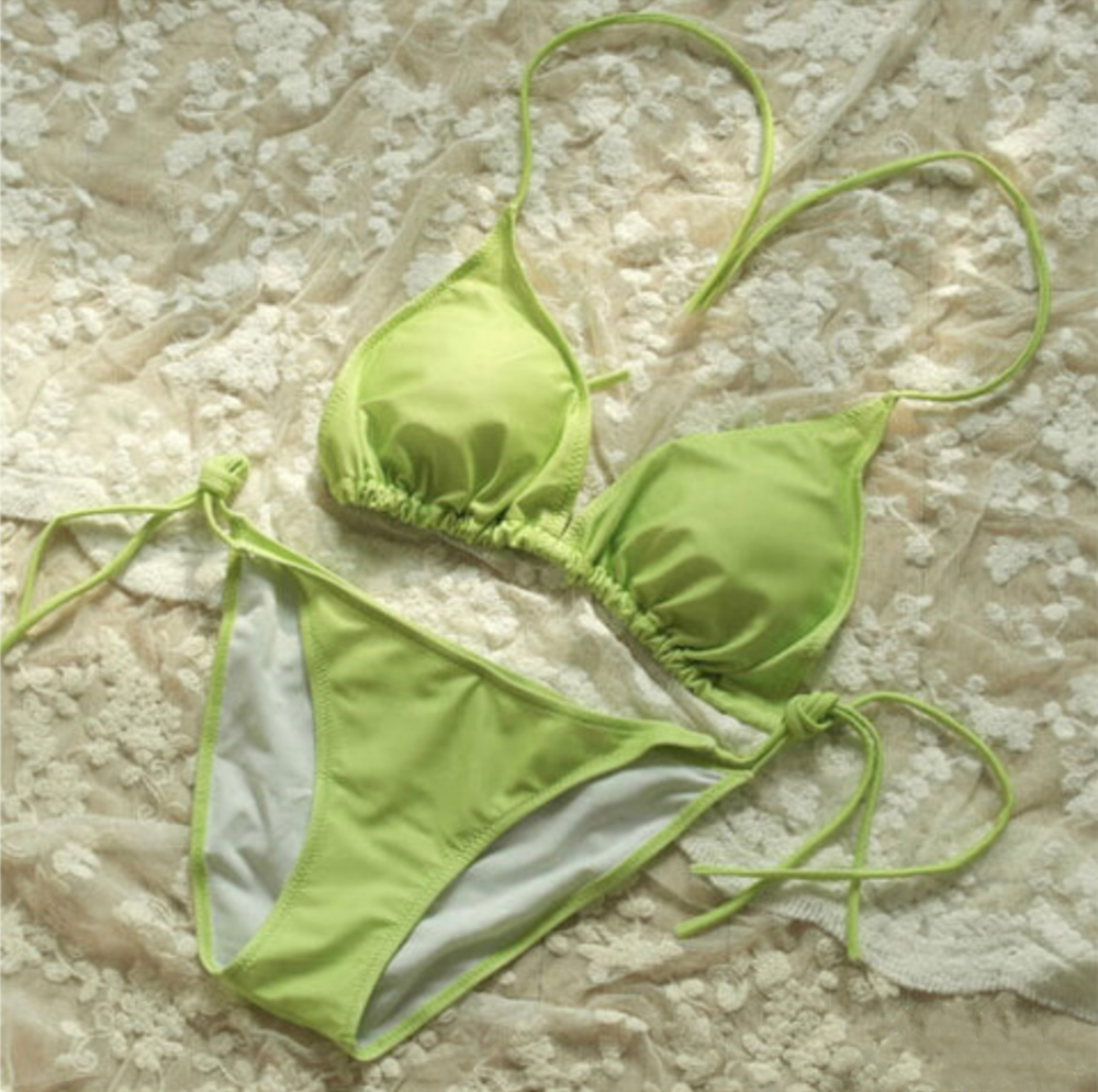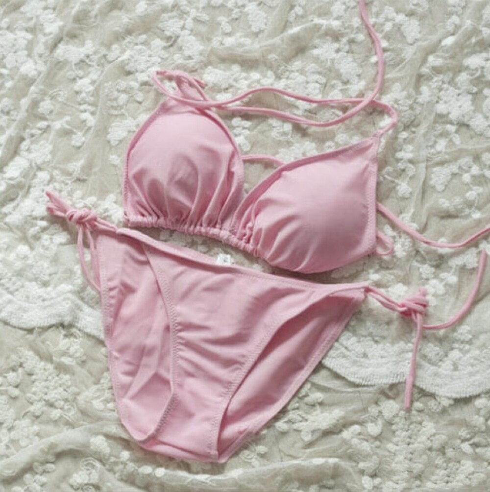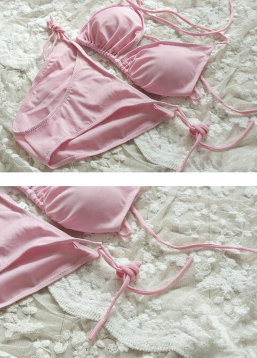 백라인에서 끈을 직접 묶어 착용하는 형태의 비키니로