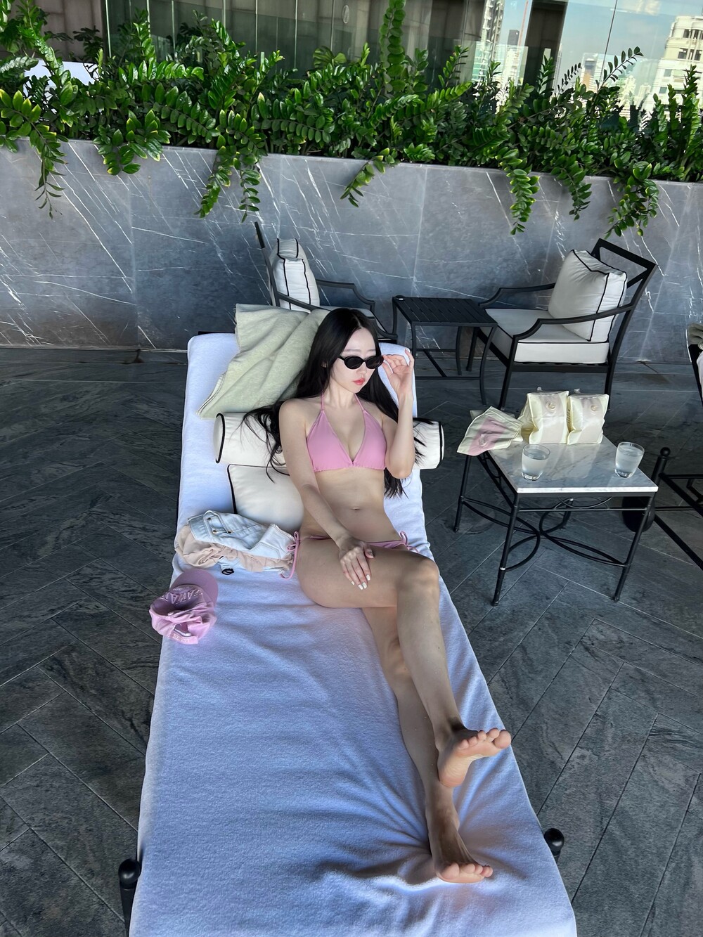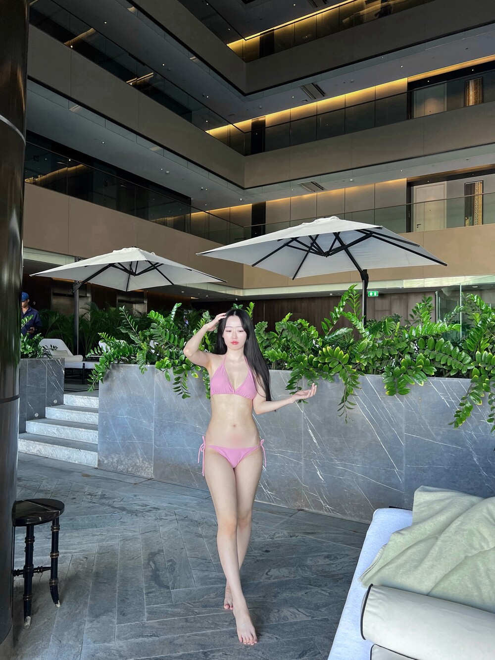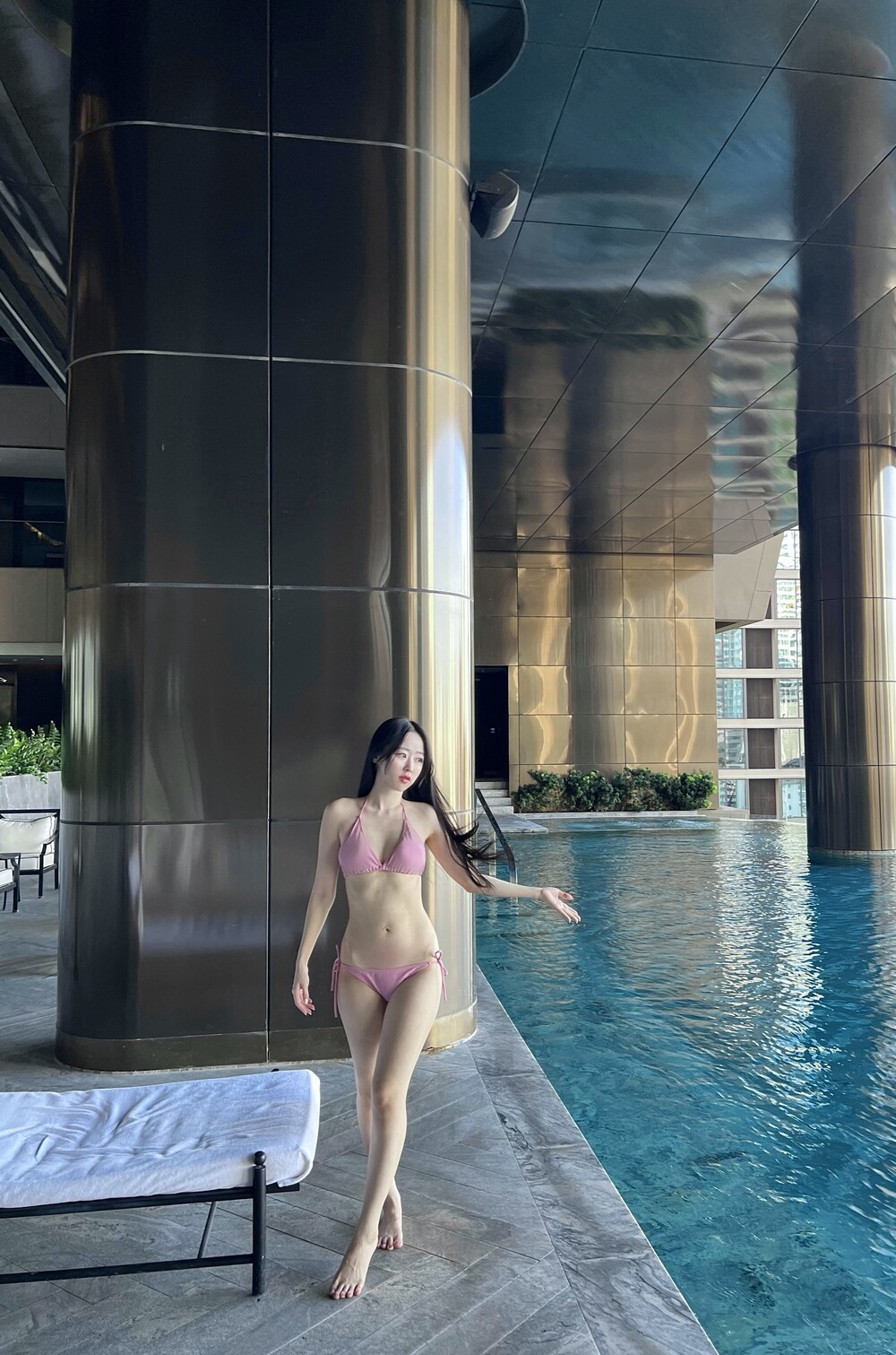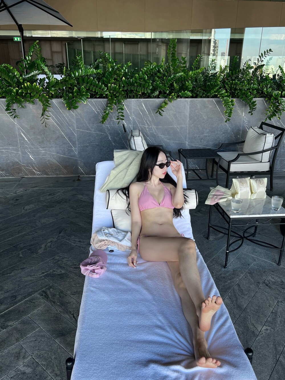 유행을 타지 않는 클래식한 태닝 비키니 세트입니다.