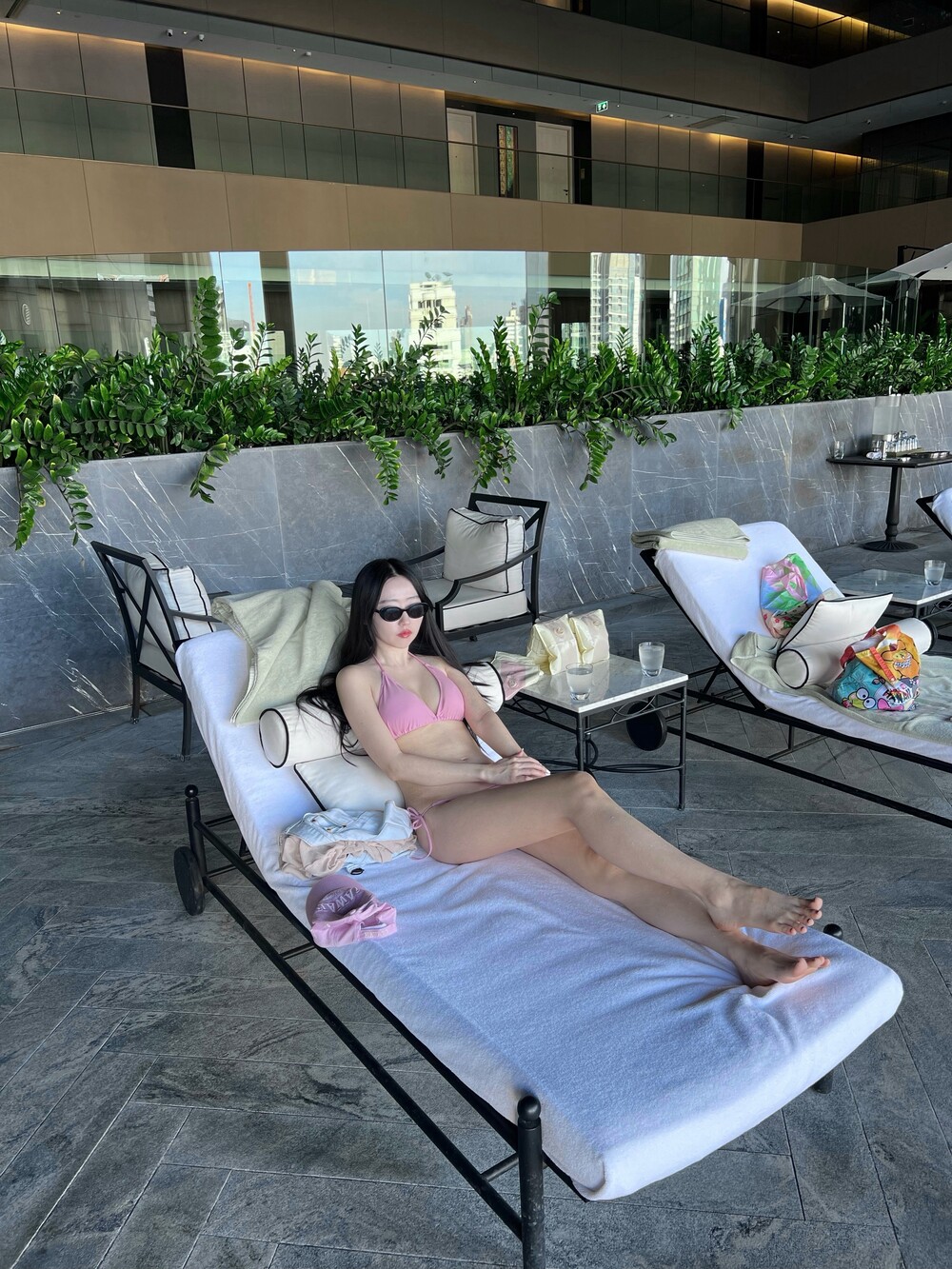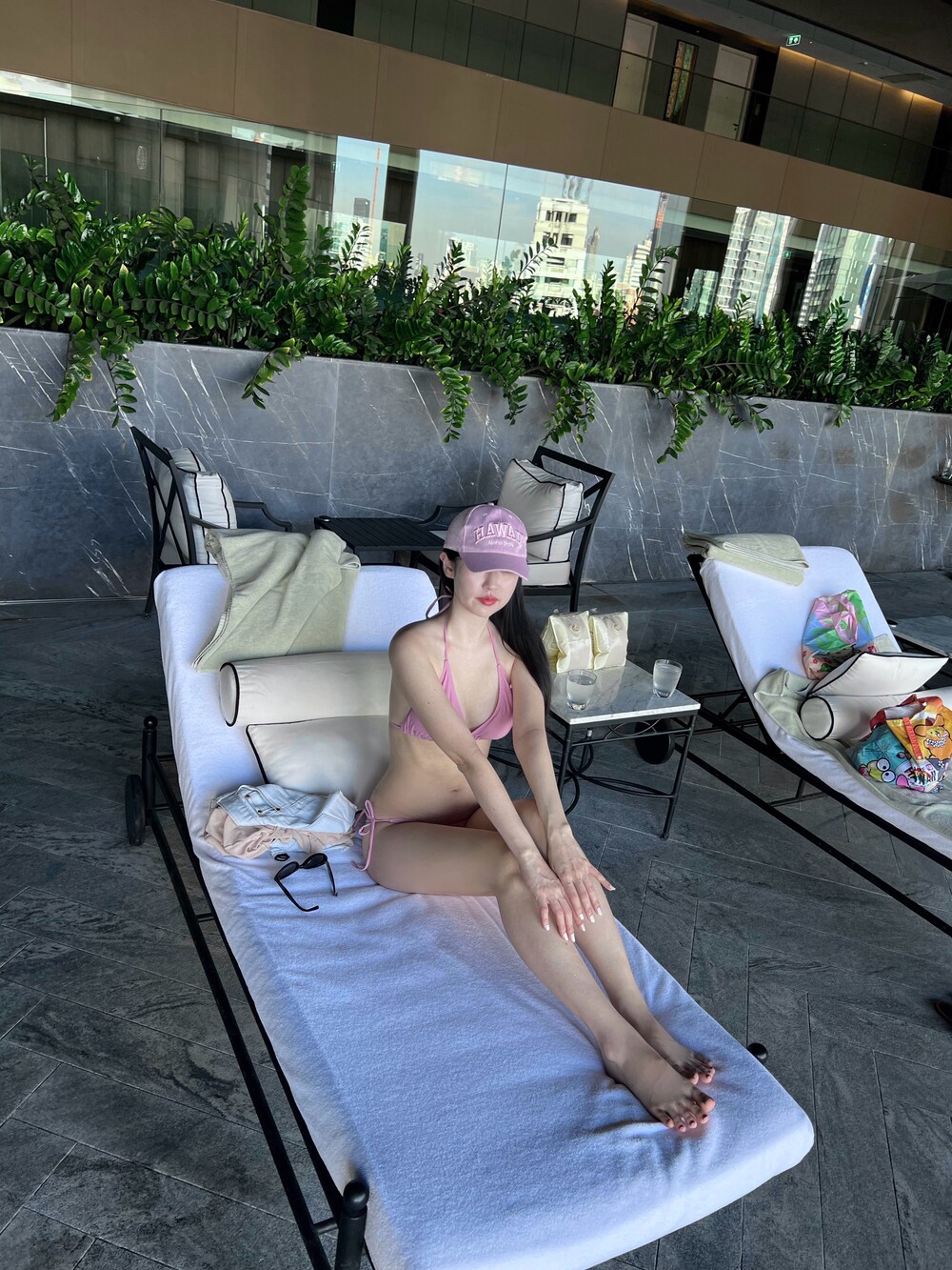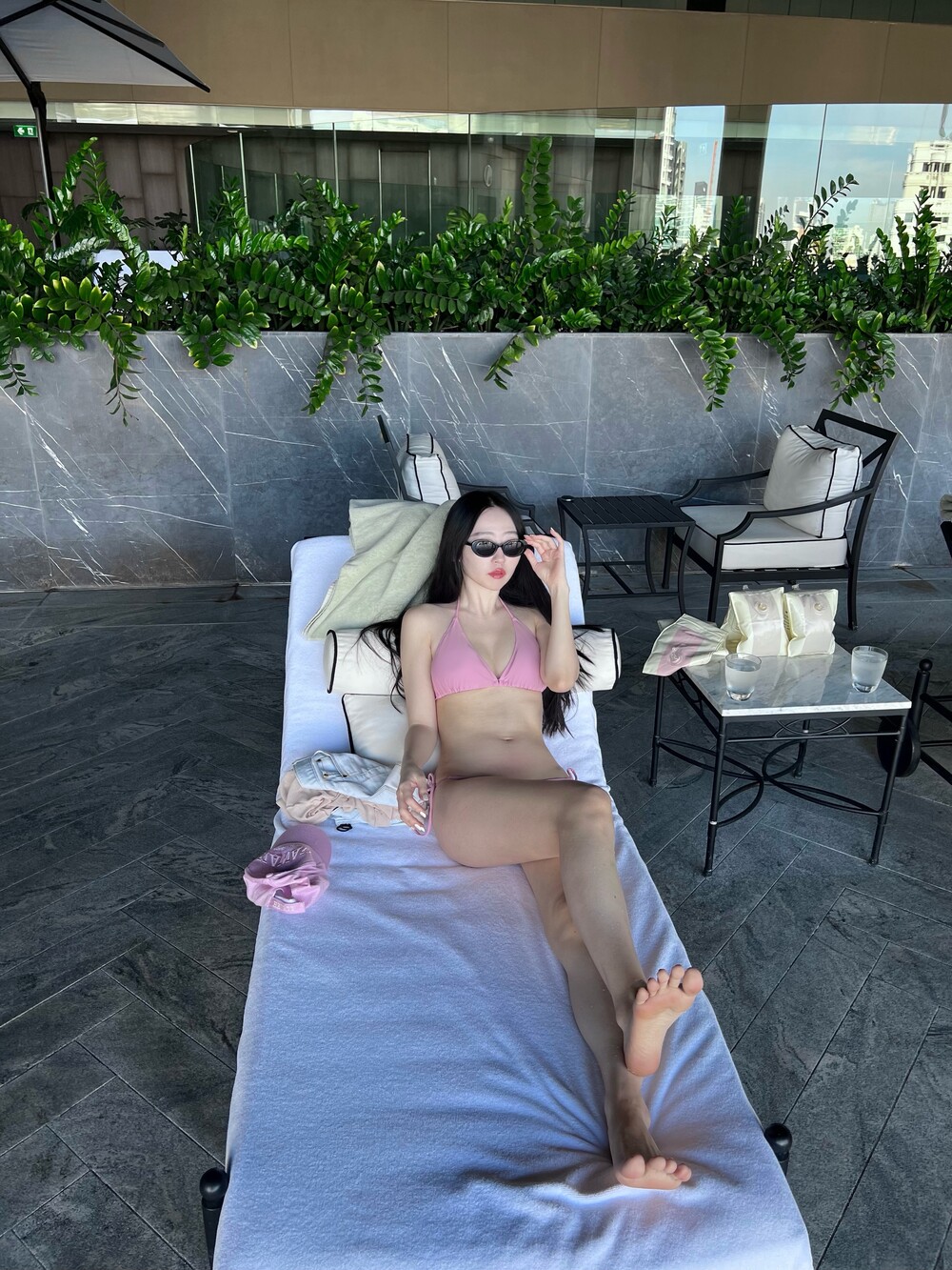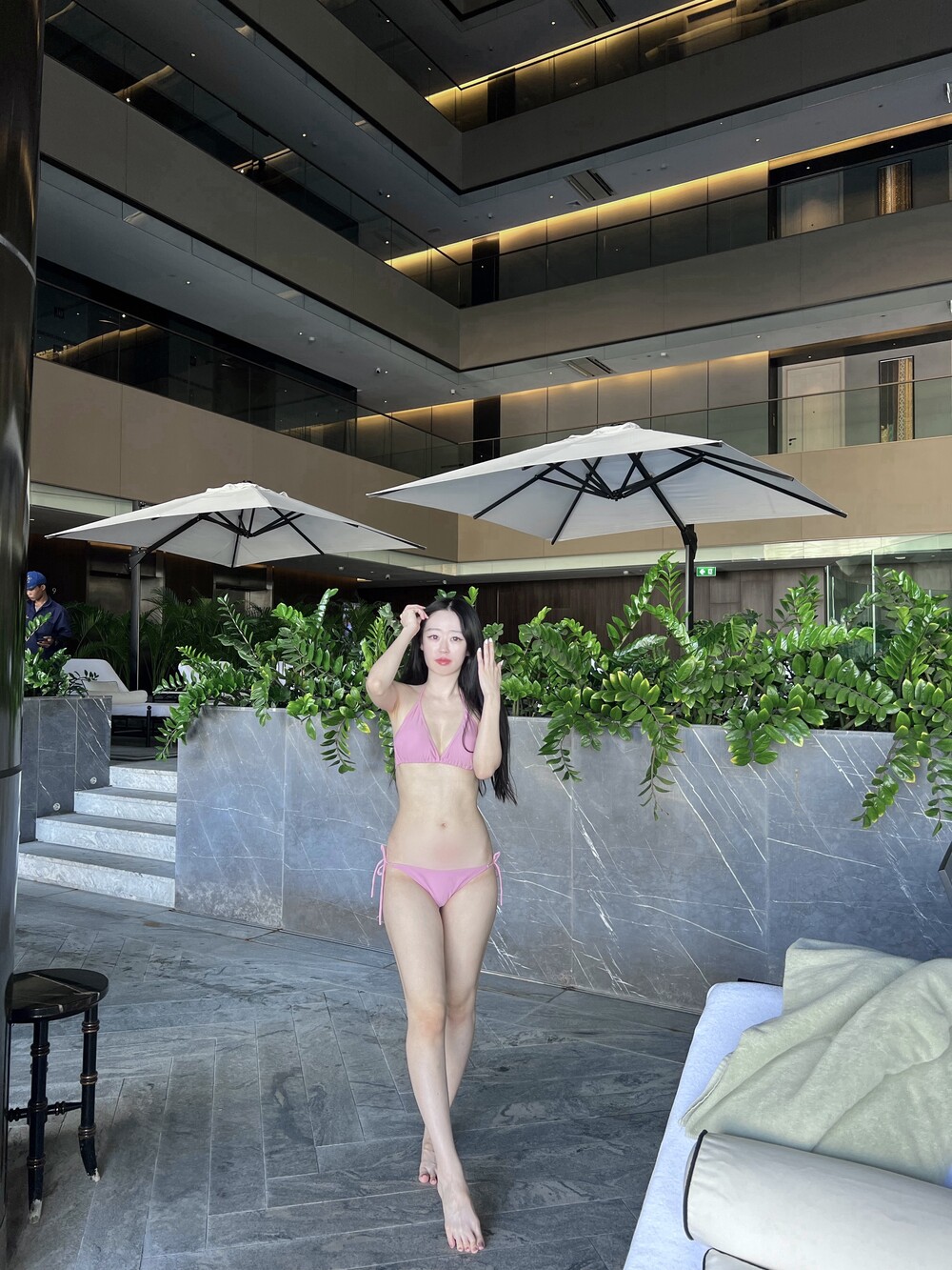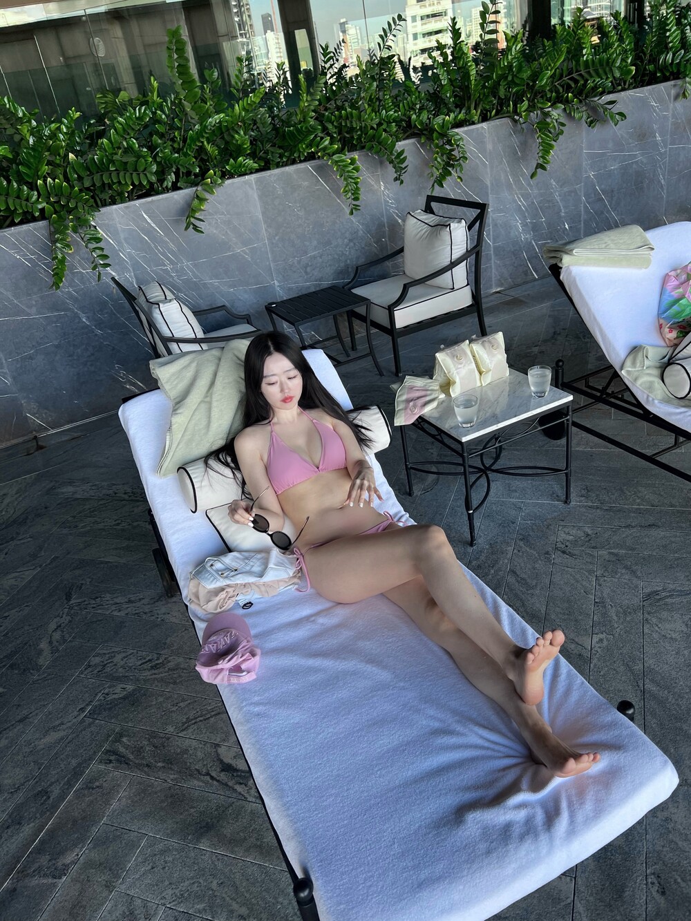 유행을 타지 않는 클래식한 태닝 비키니 세트입니다.