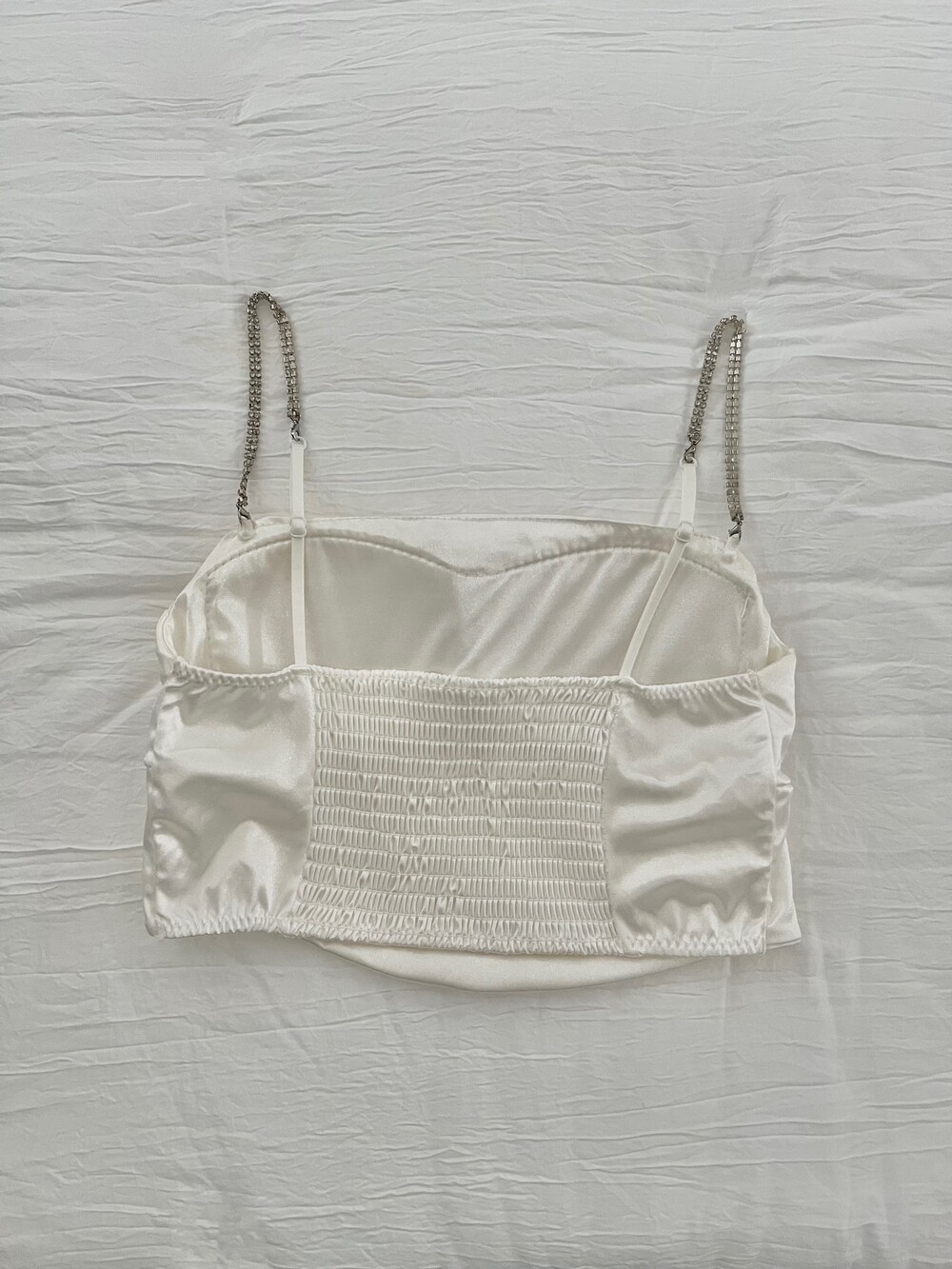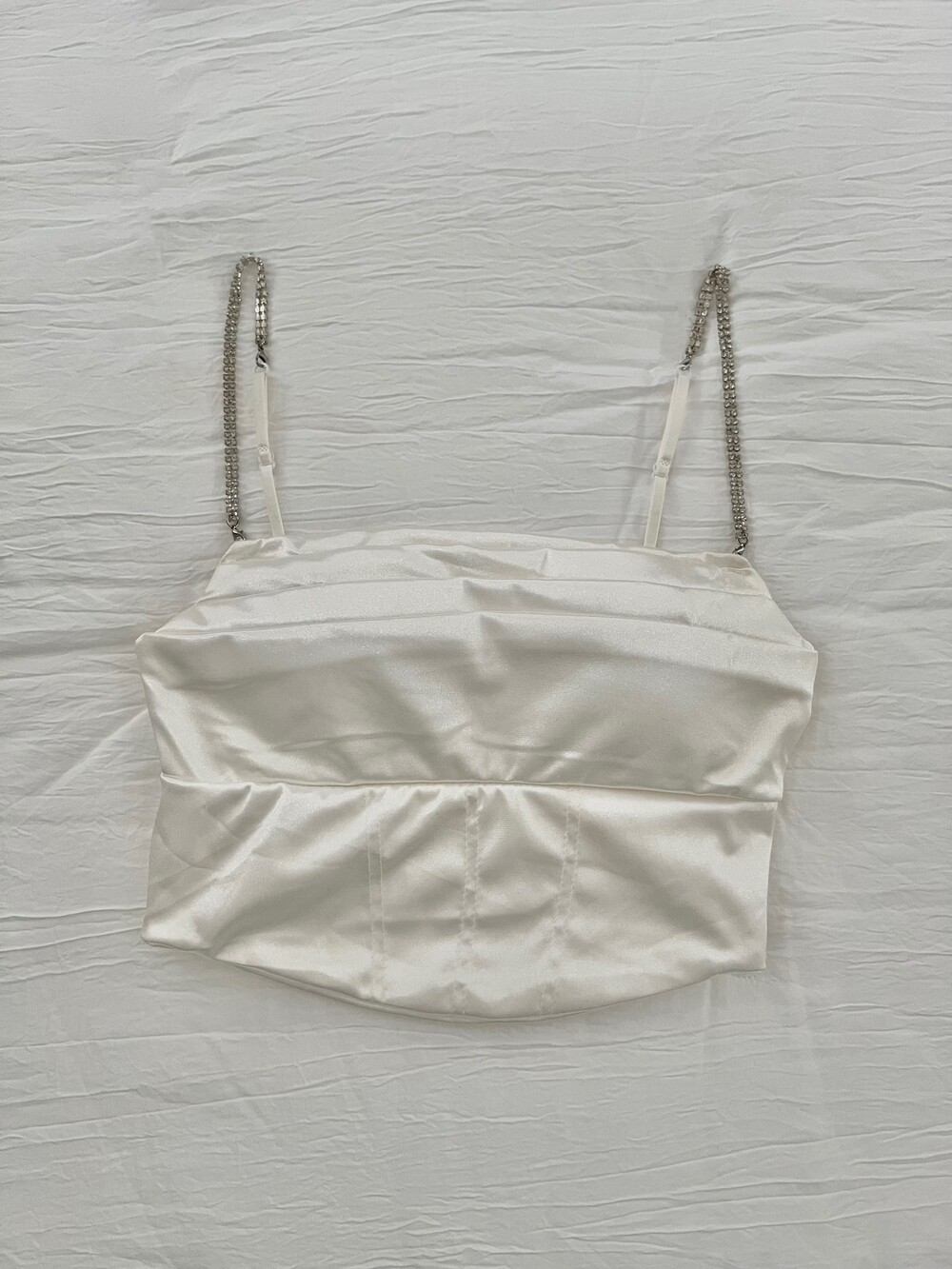 고급스러운 새틴 소재로, 큐빅으로 된 어깨끈이 포인트이며