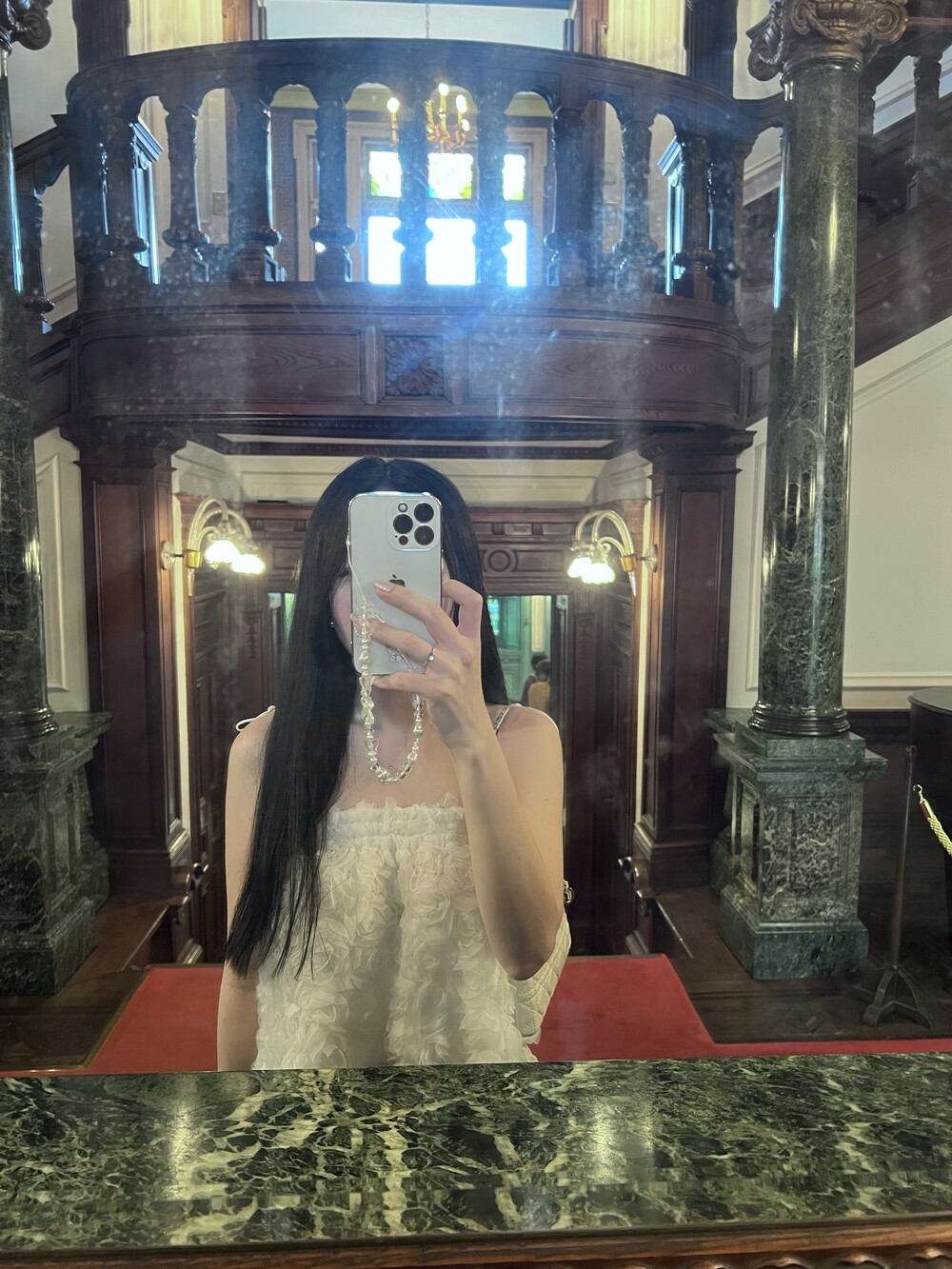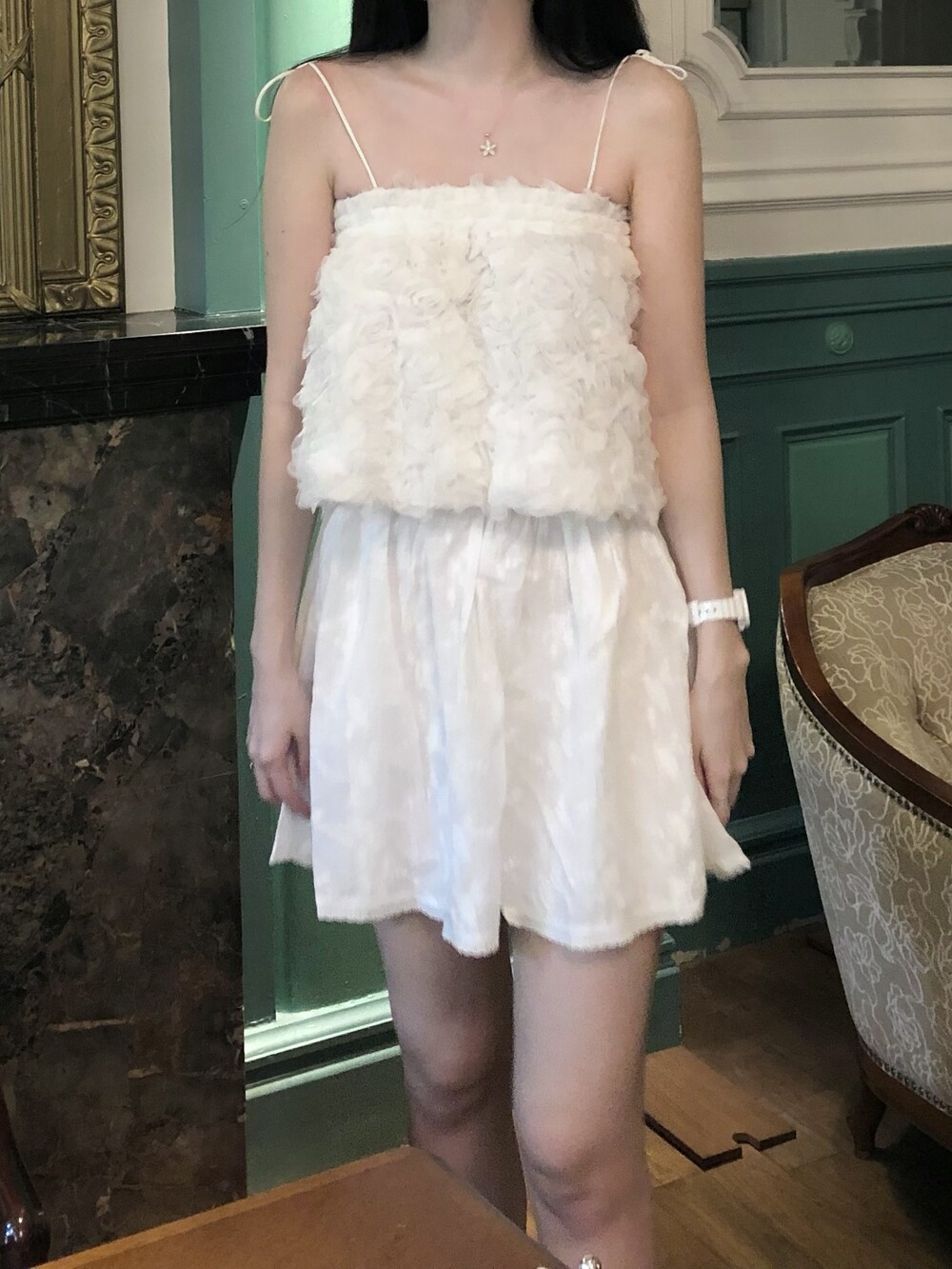 고급스러운 장미 코사지 패턴 디테일이 포인트이며