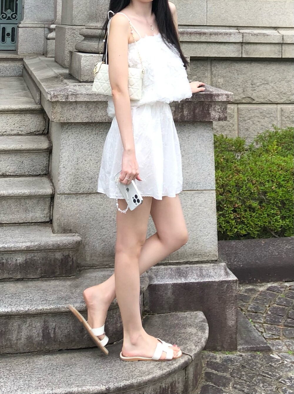 어깨끈도 직접 조절 가능한 리본으로 묶는 방식이랍니다.