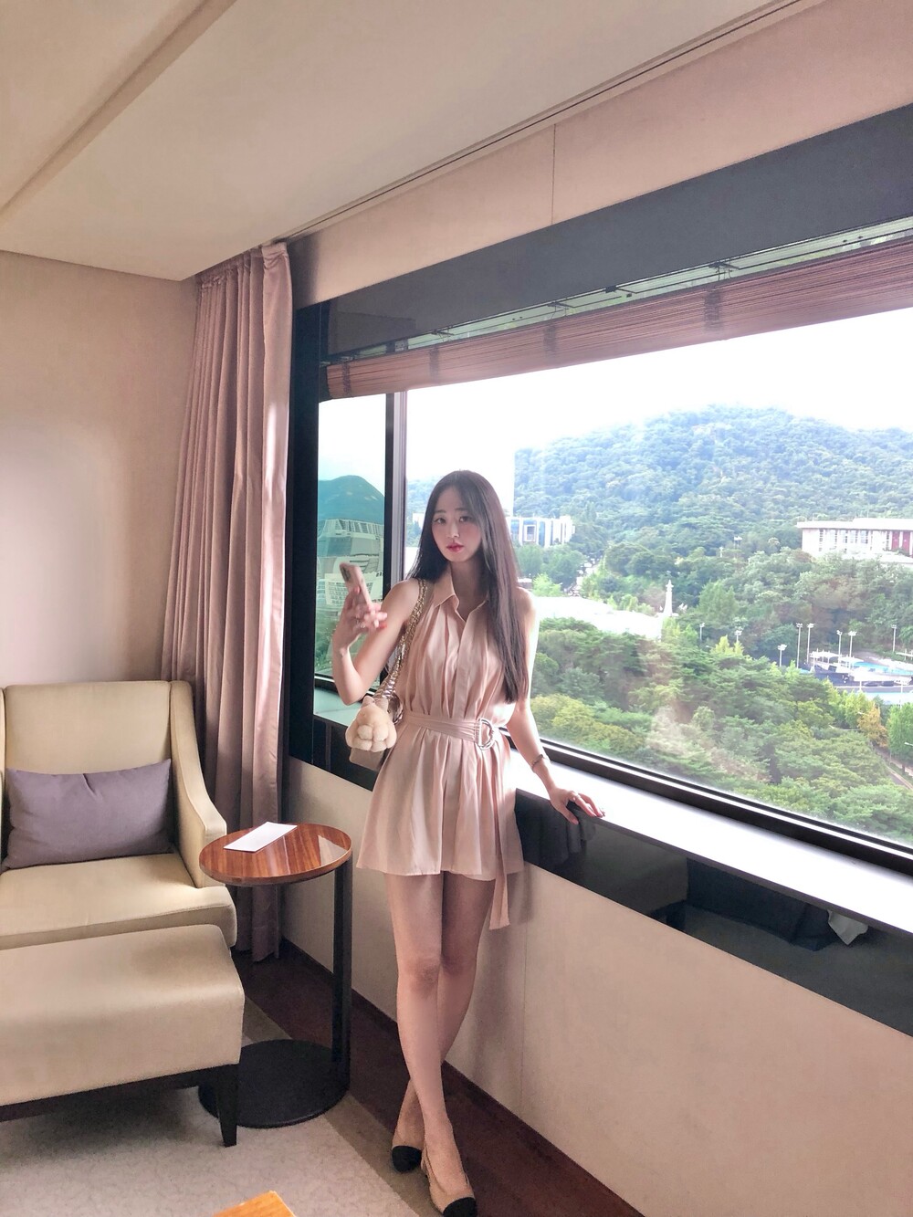 벨트 세트인 제품으로 모델은 벨트를 둘러주어 착용하였어요.