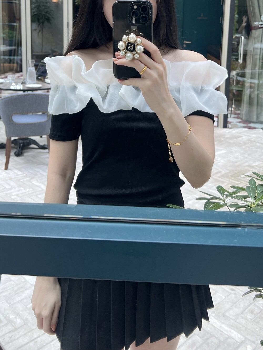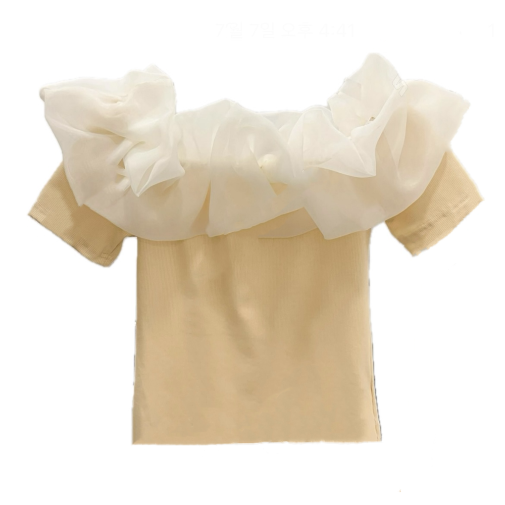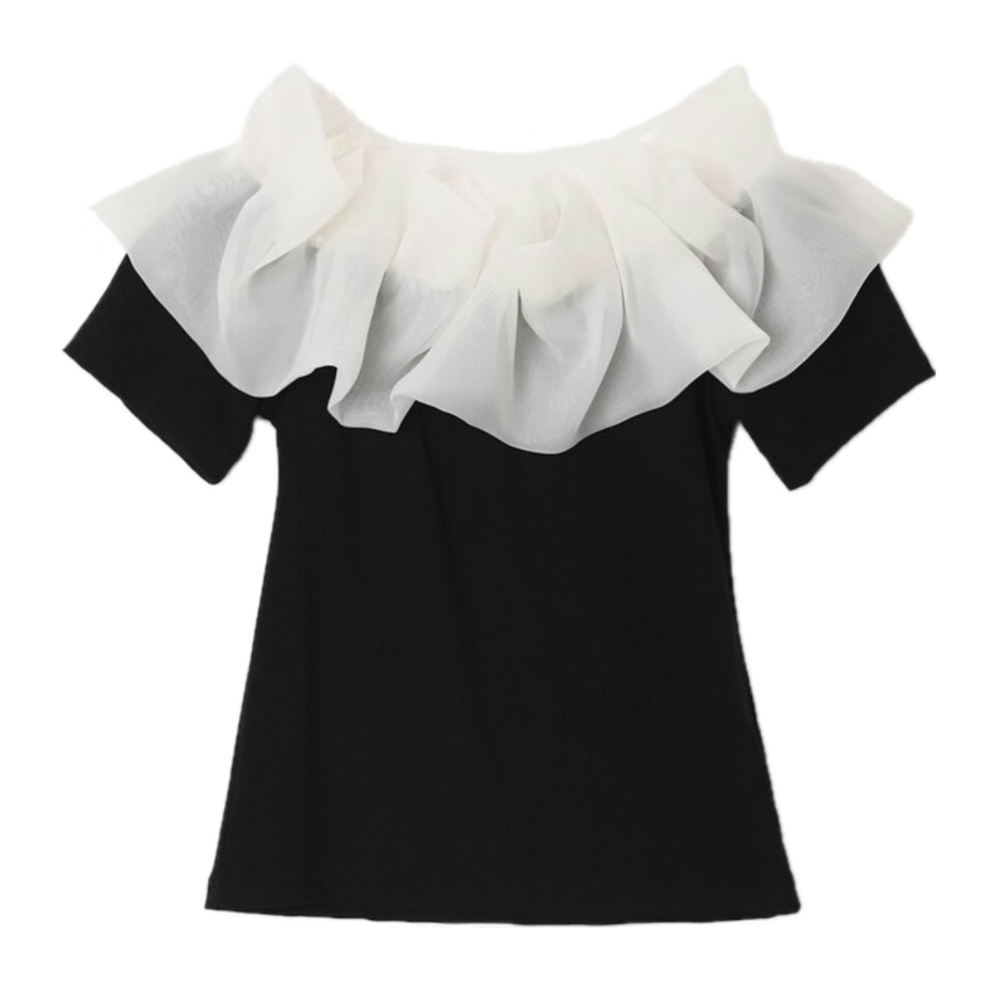 frill off shoulder T (3color) 배색 프릴 오프숄더