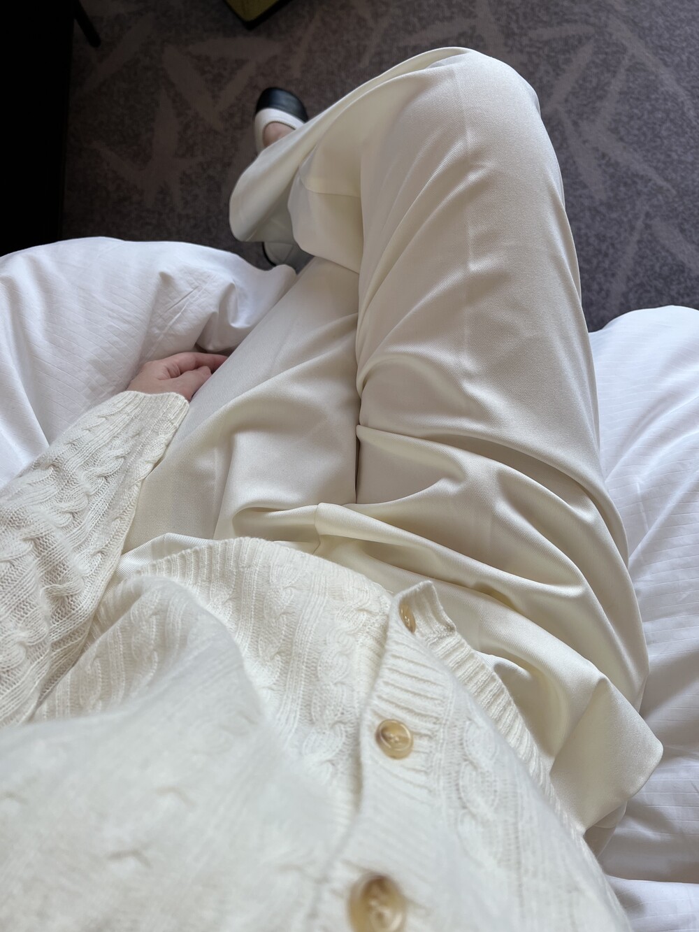 핀턱 디테일이 포인트인 와이드핏 팬츠입니다.