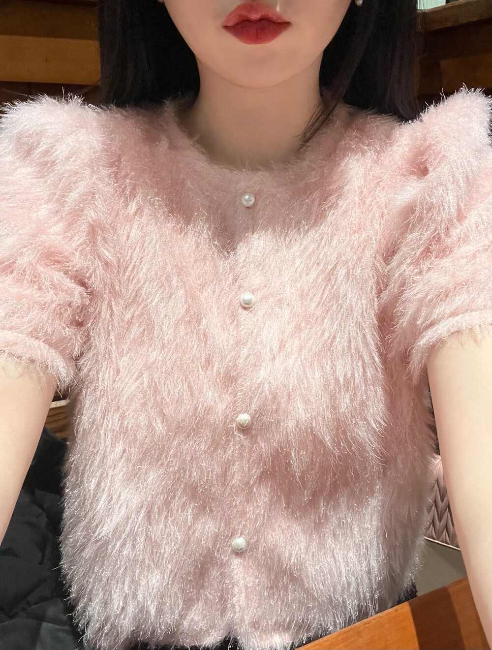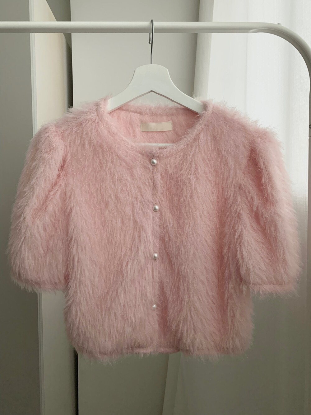 고퀄리티 원단의 국내 제작 앙고라 반팔 가디건으로