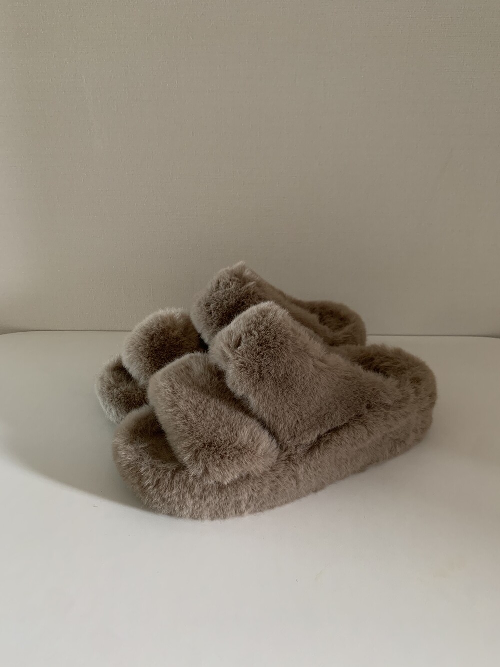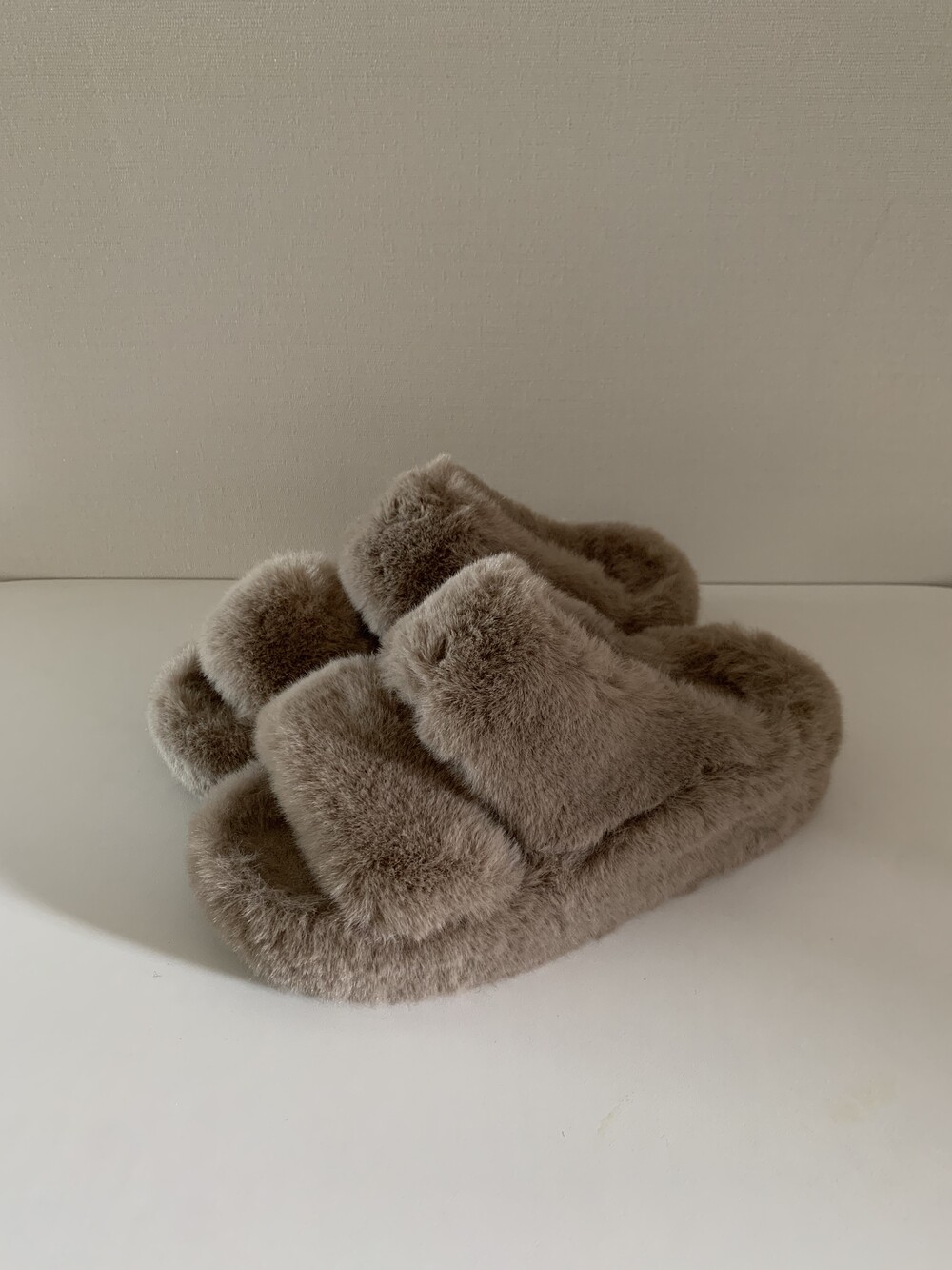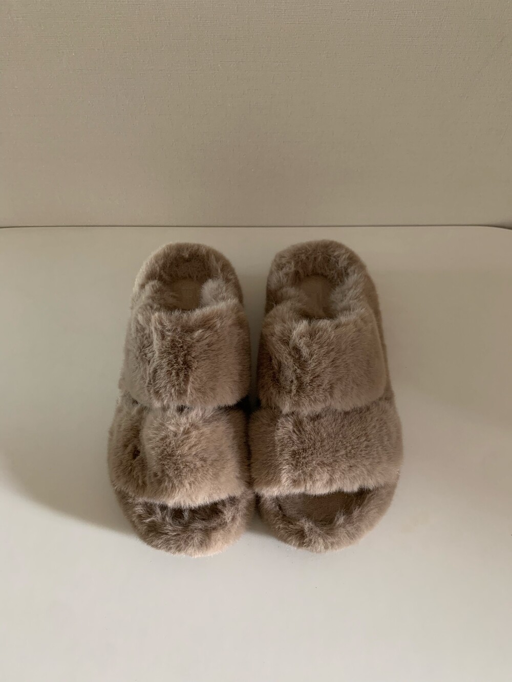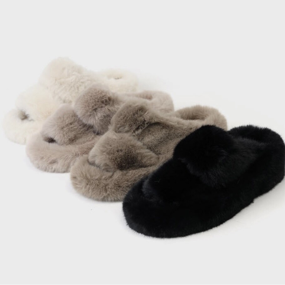트렌디하면서도 따뜻한 신상 퍼 슬리퍼입니다.