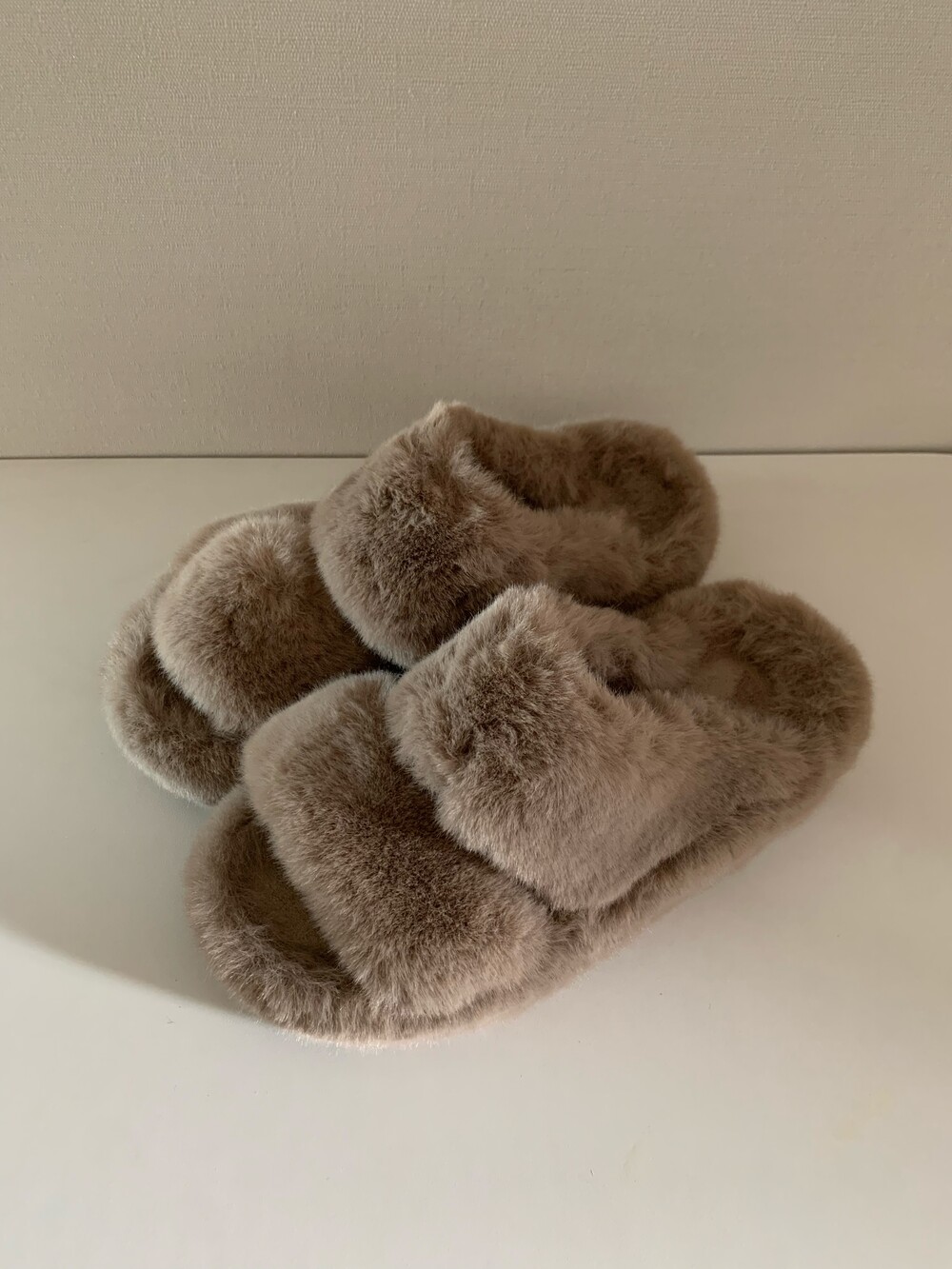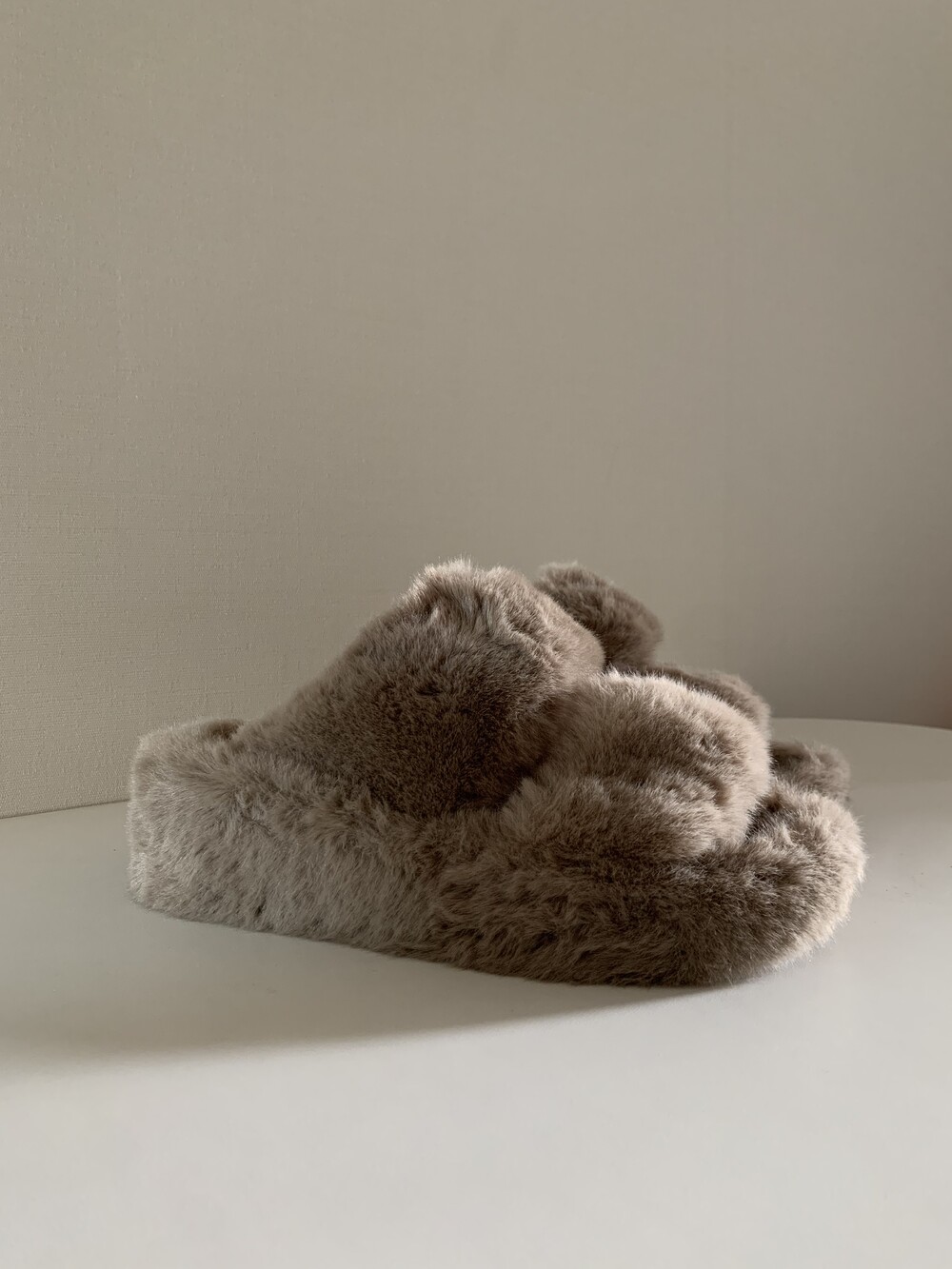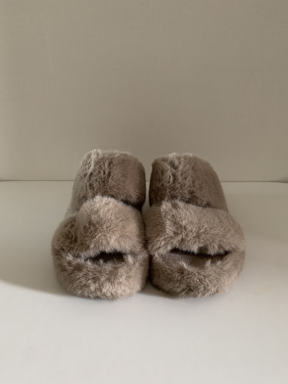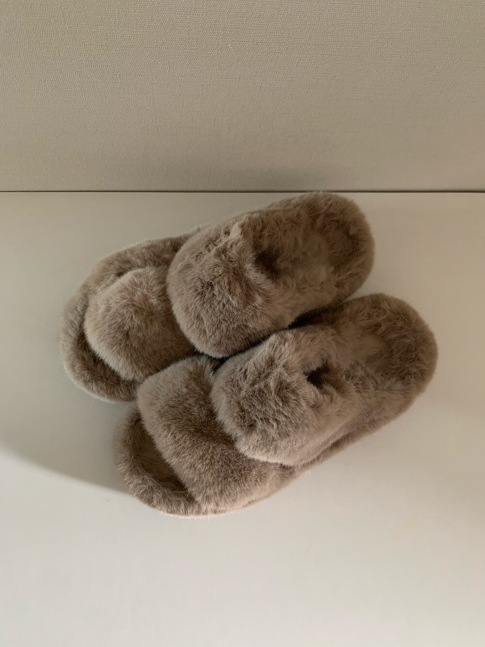 트렌디하면서도 따뜻한 신상 퍼 슬리퍼입니다.