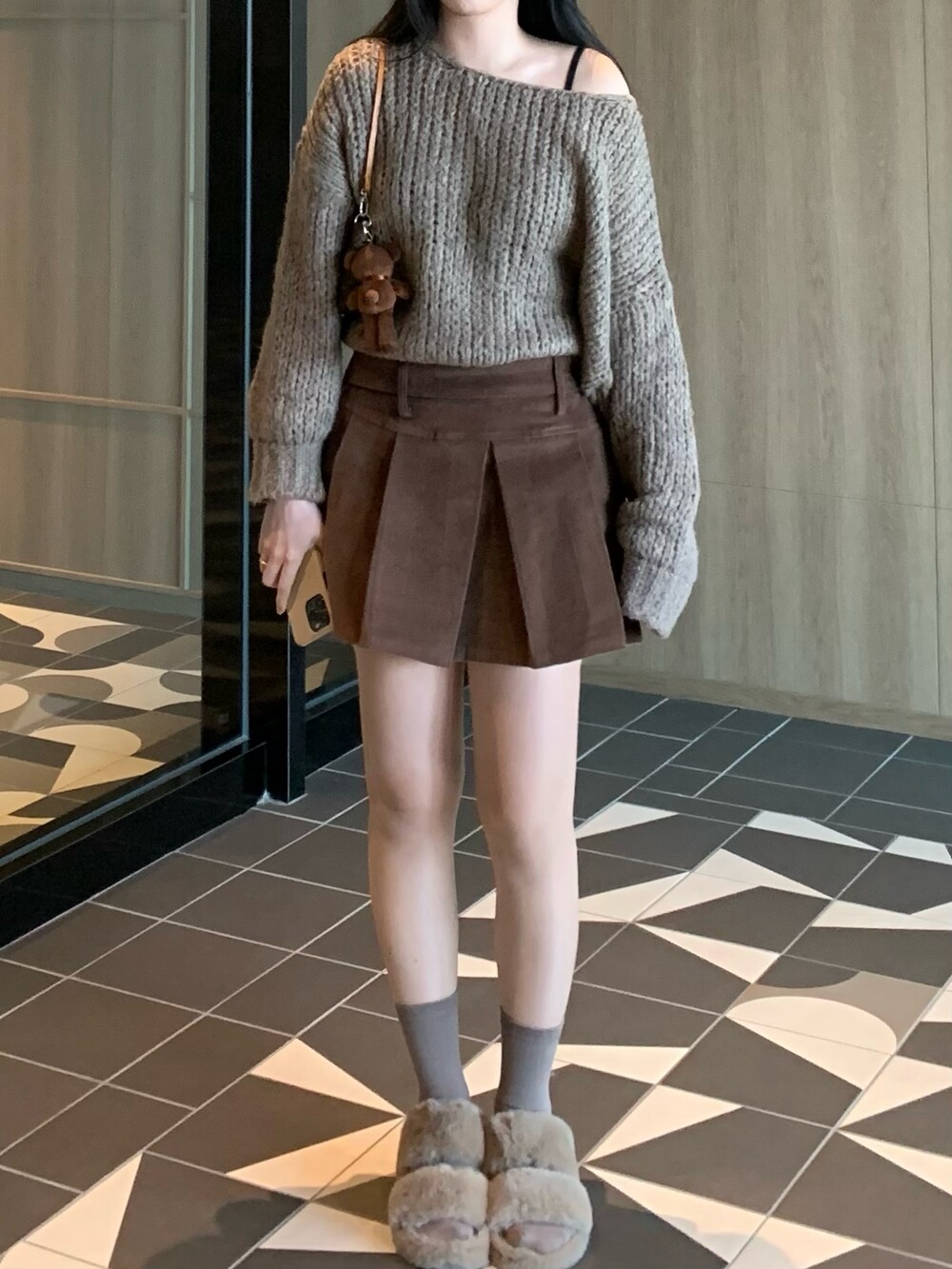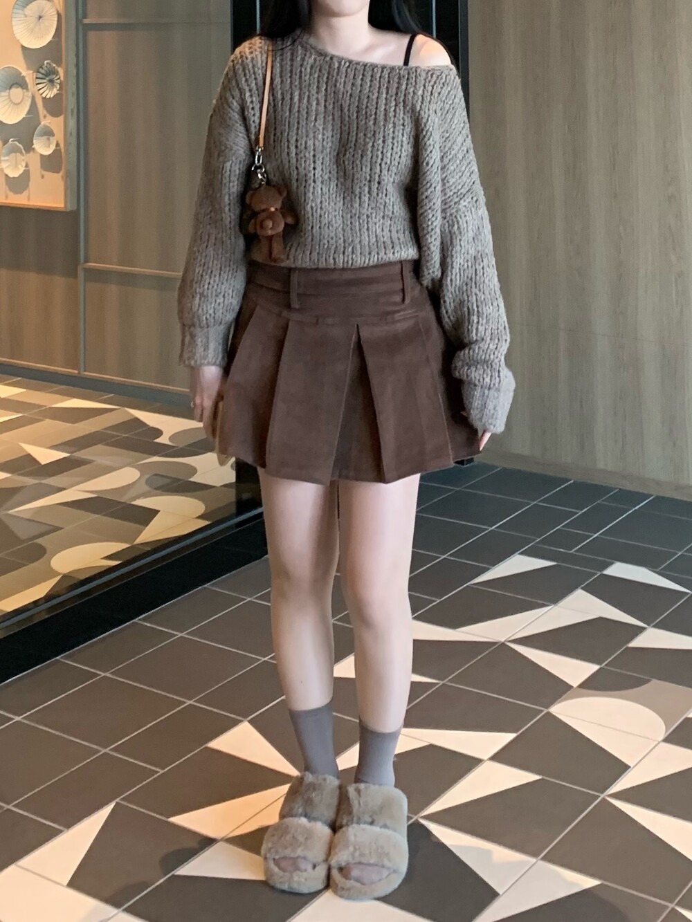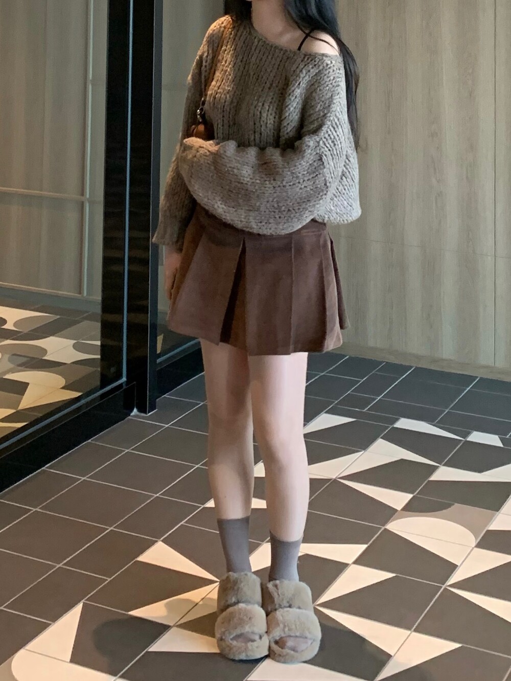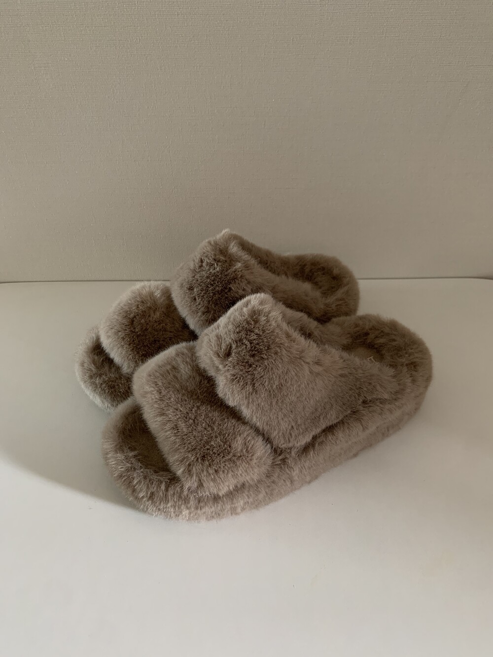 트렌디하면서도 따뜻한 신상 퍼 슬리퍼입니다.
