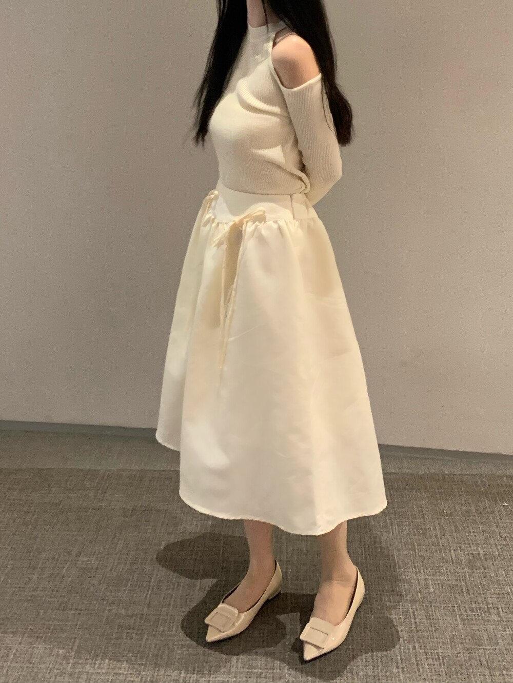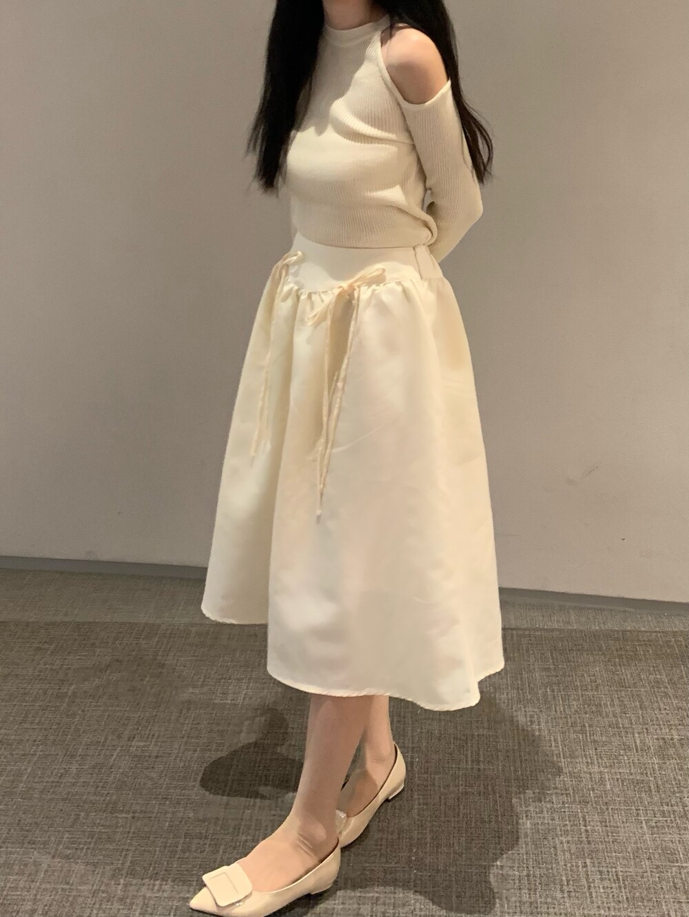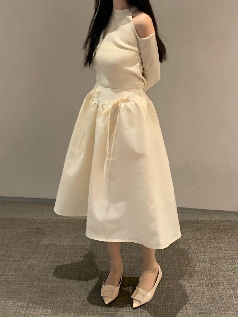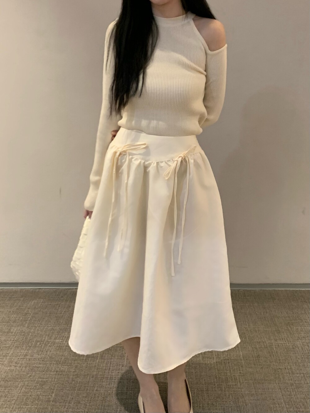 ribbon flared skirt (3color) 롱스커트