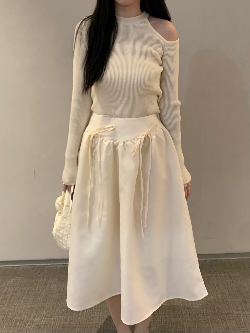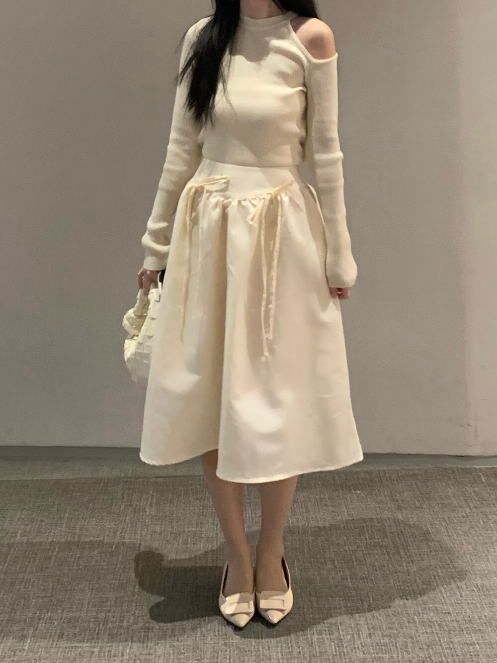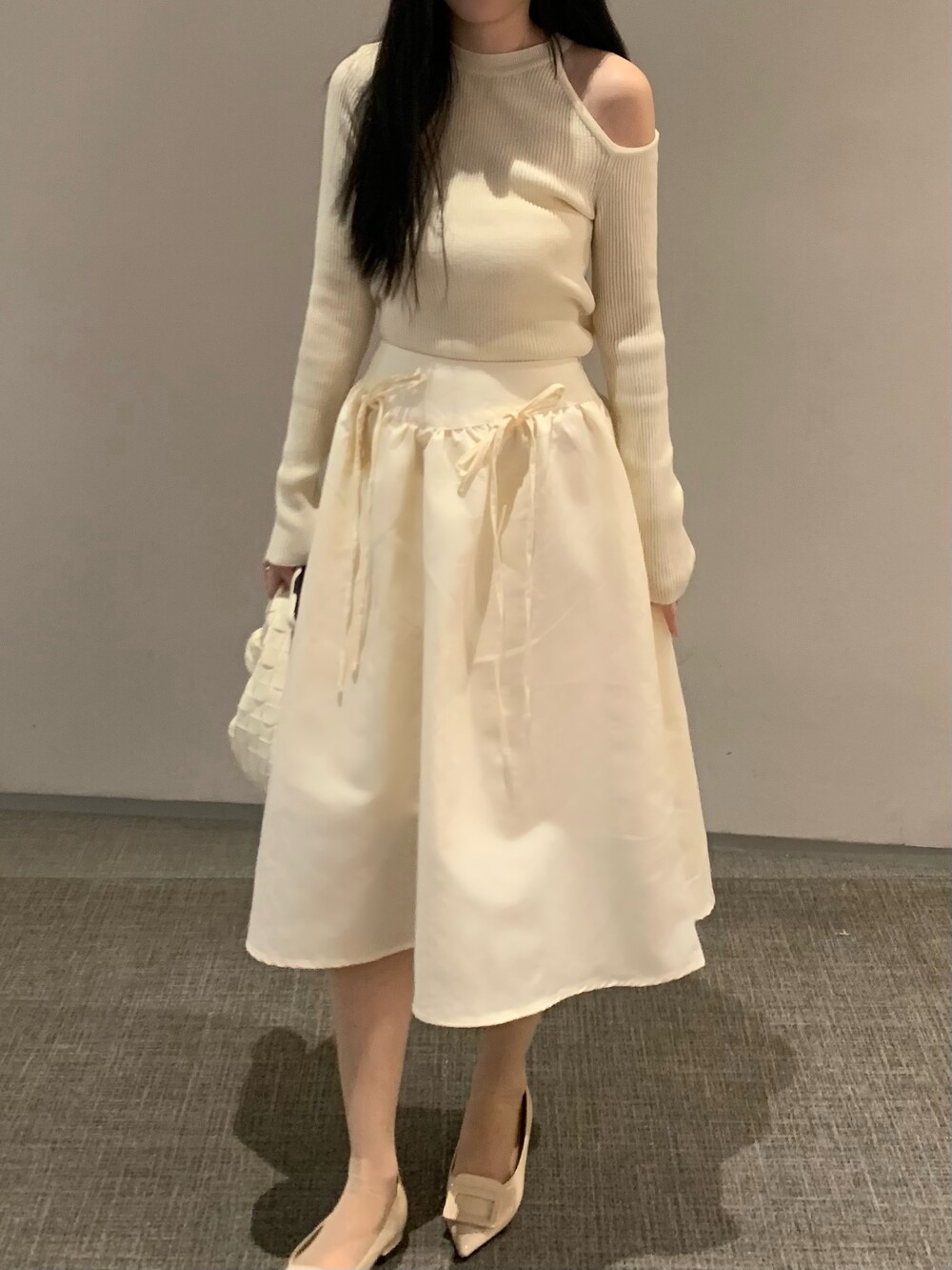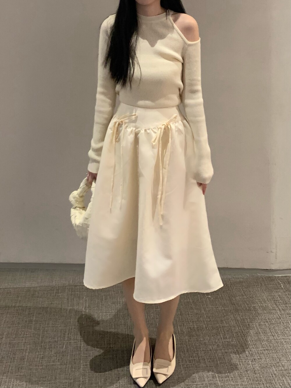 ribbon flared skirt (3color) 롱스커트