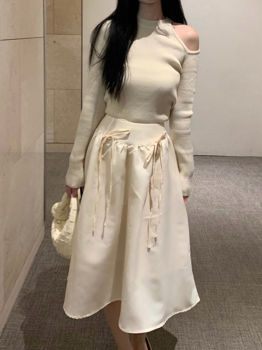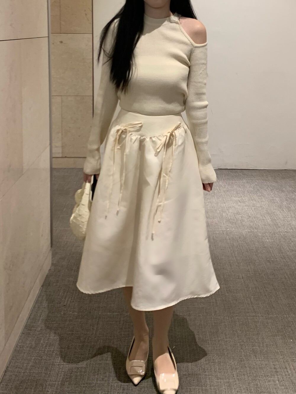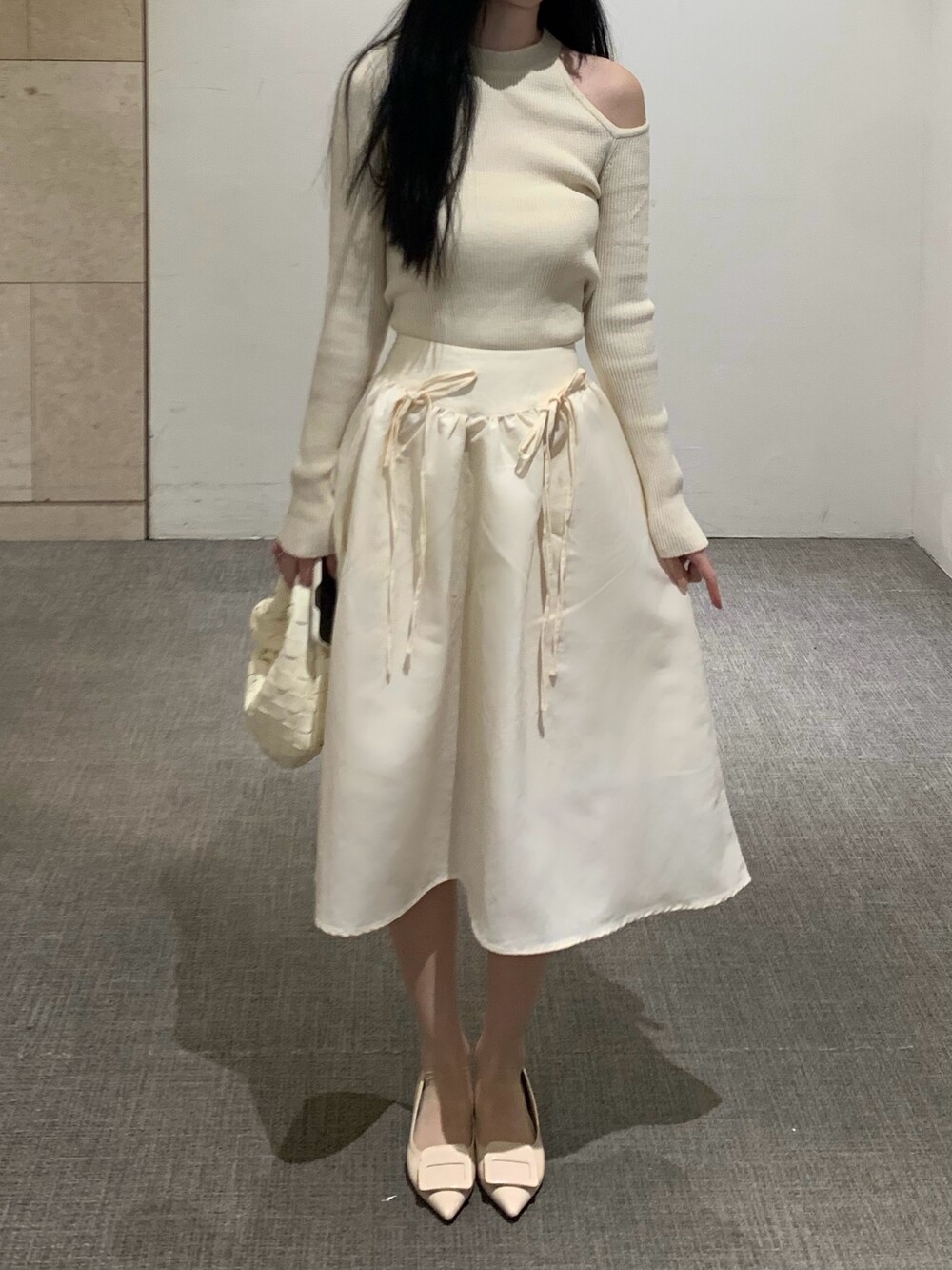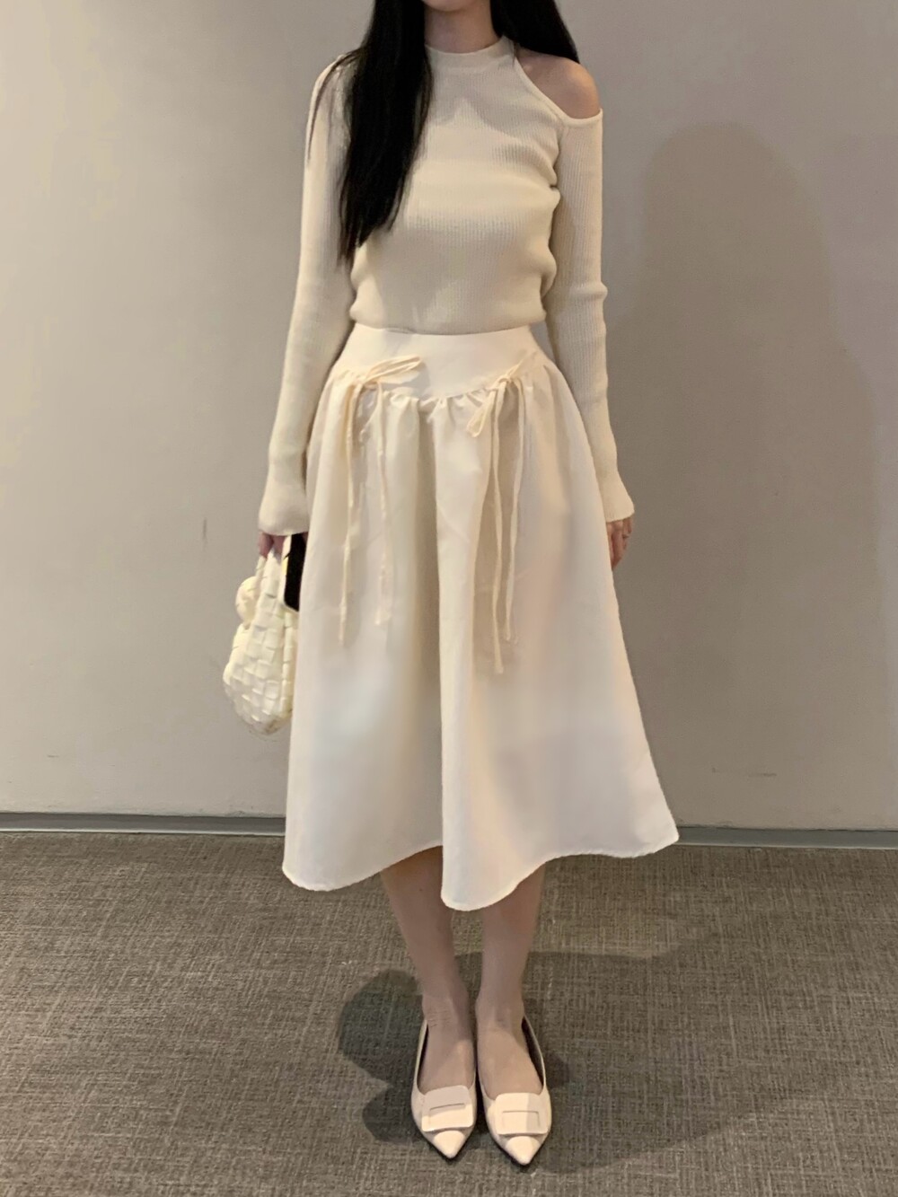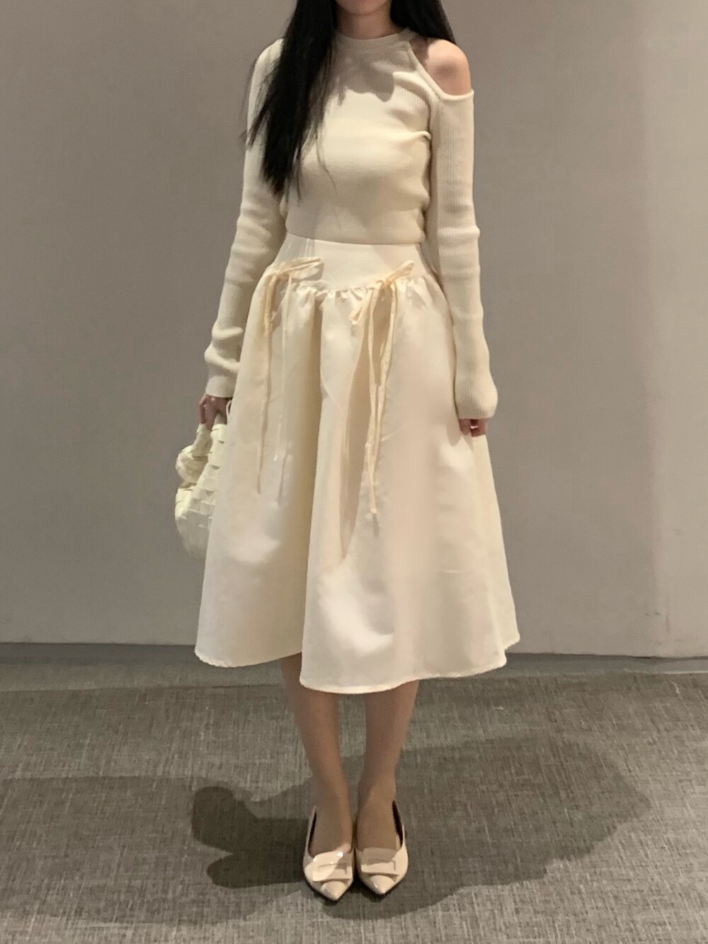 ribbon flared skirt (3color) 롱스커트