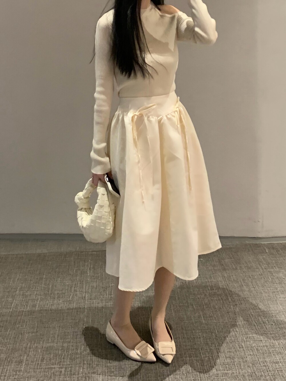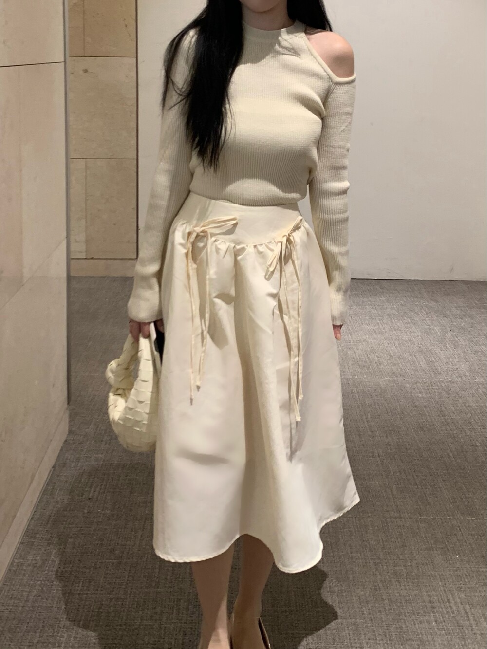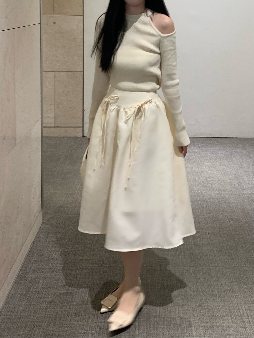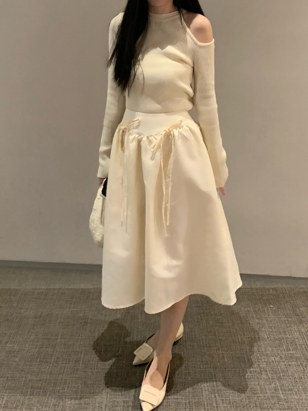 ribbon flared skirt (3color) 롱스커트