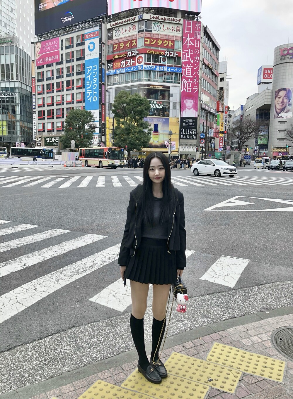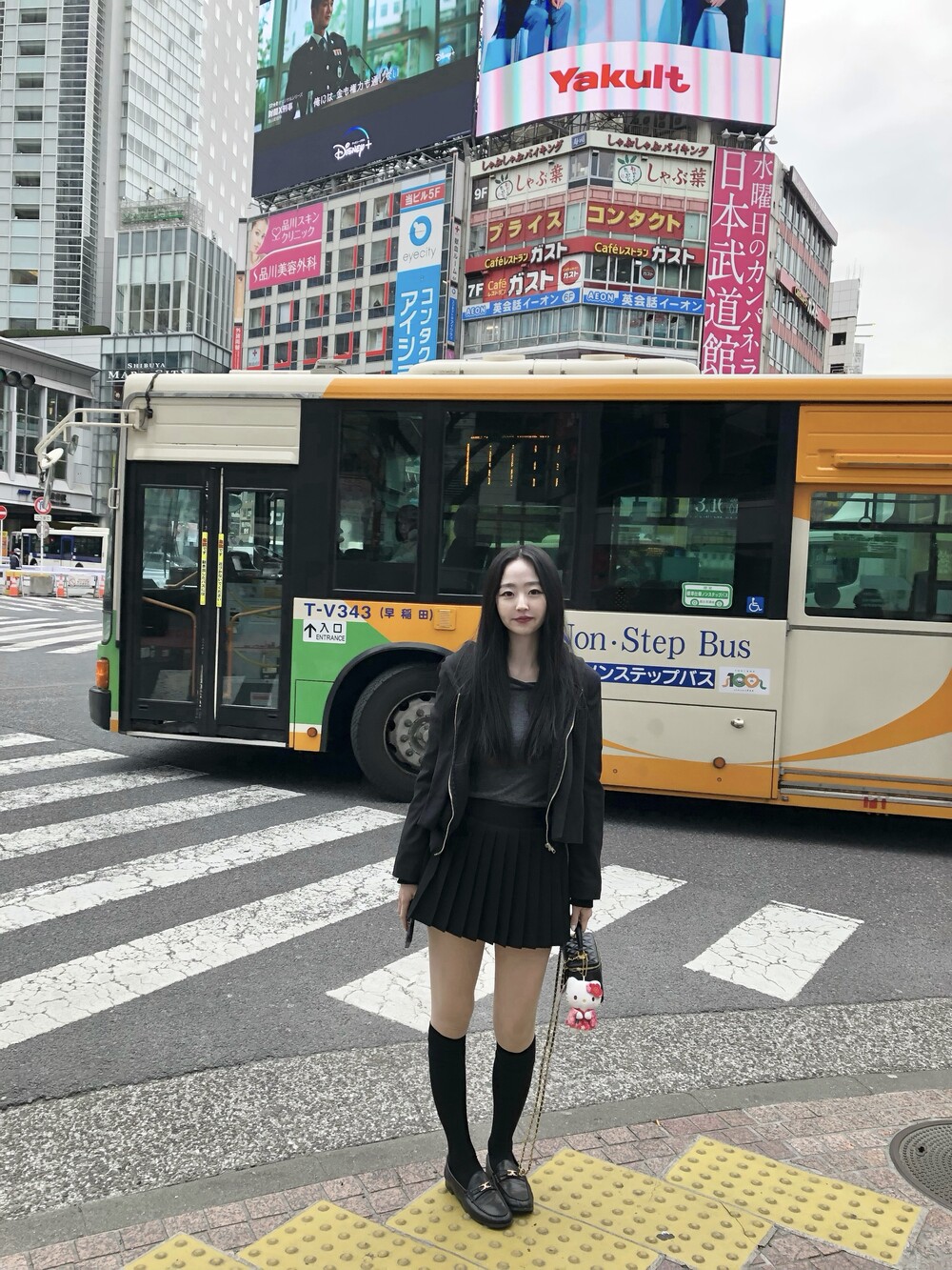 모델은 오버핏 크롭 자켓과 함께 착용해 주었어요.