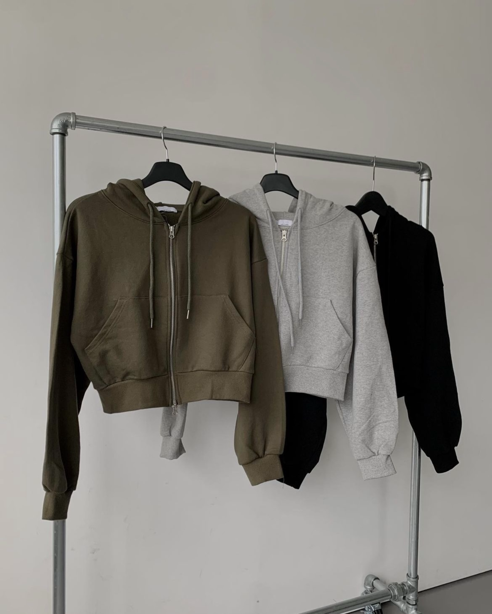 미니멀한 무드의 신상 크롭 후드 집업 소개해드려요.